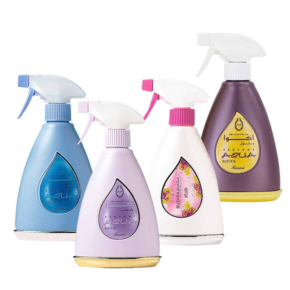 Rasasi拉莎斯 Perfume Aqua沉香精油大容量淨化香水噴霧組 375ml/瓶美人魚Aqua Afrah|獨角獸Aqua Kausar|皇冠Aqua Bushra|Masarrah(黃)|Azamah(綠)|Zeenat Al Farsh(粉)|BatoolOthersLOKI 杜拜香水官方旗艦店