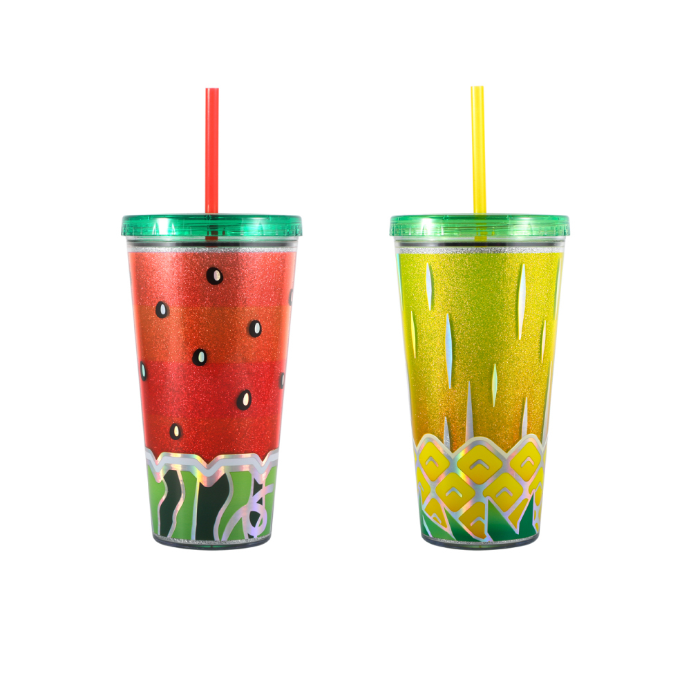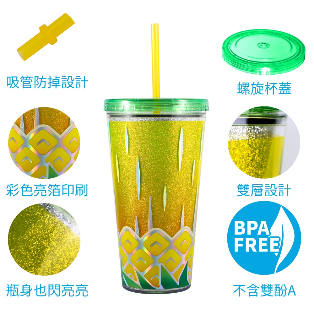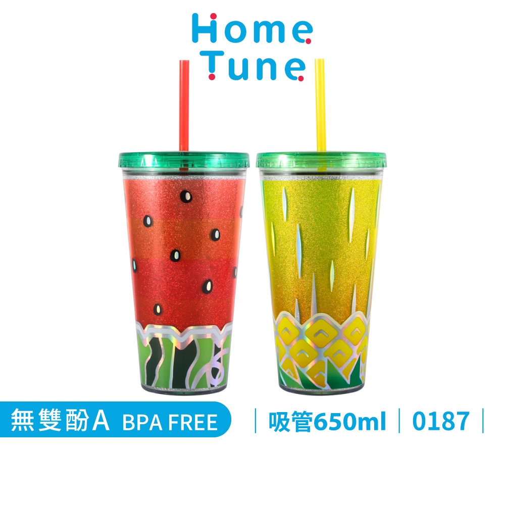 【特價出清】Home Tune雙層閃亮吸管杯650毫升|隨行杯隨身杯外帶杯飲料杯冷水杯環保吸管杯0187西瓜杯|鳳梨杯Water Bottles & AccessoriesHome Tune家音