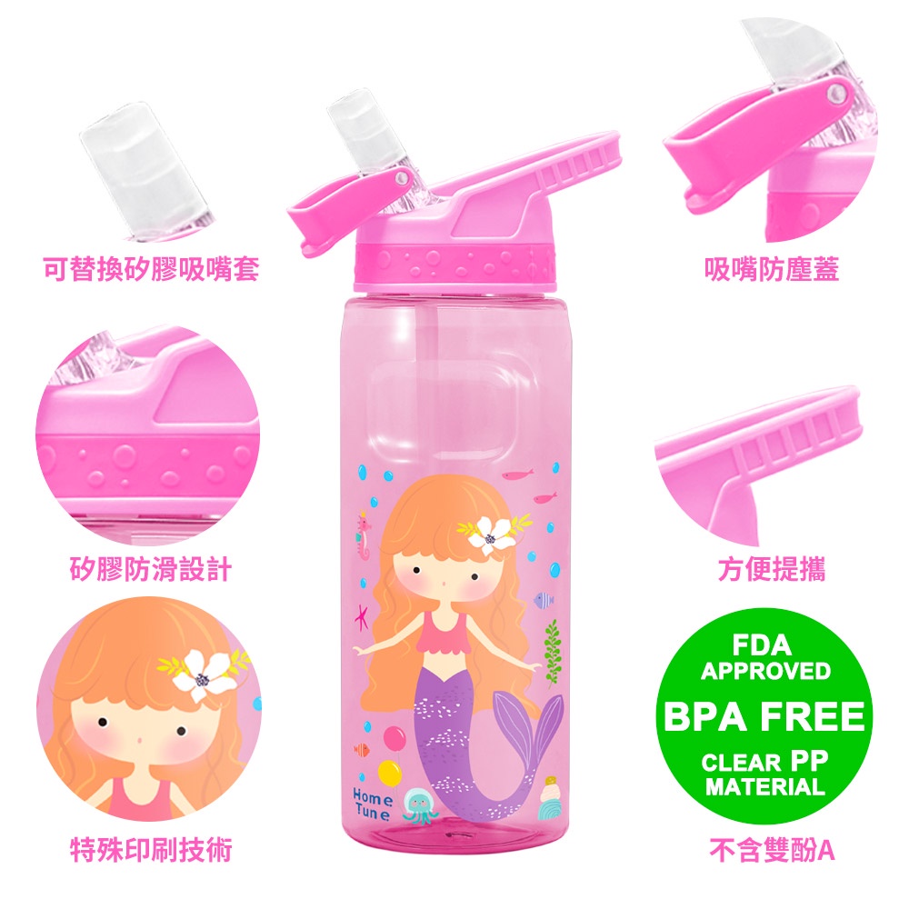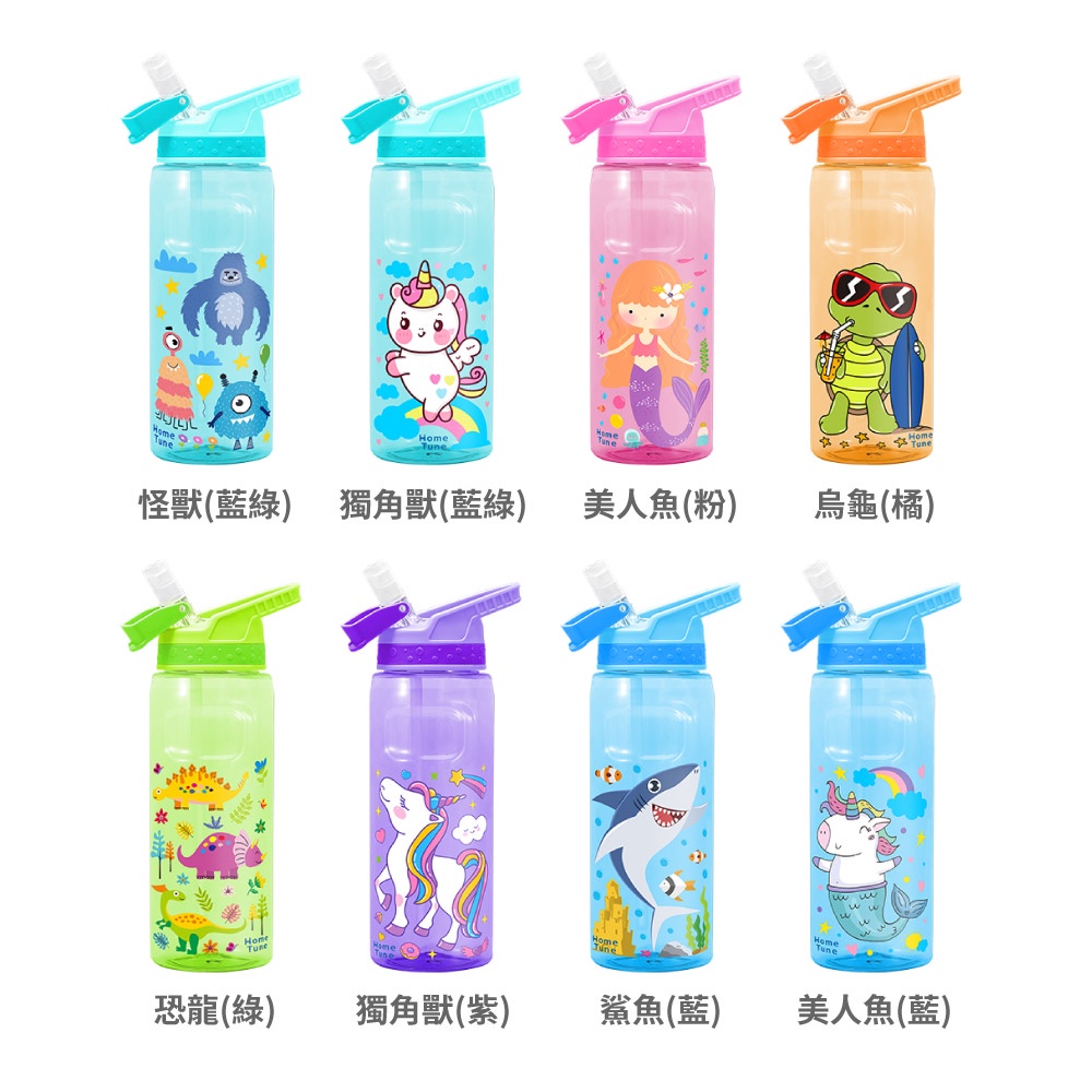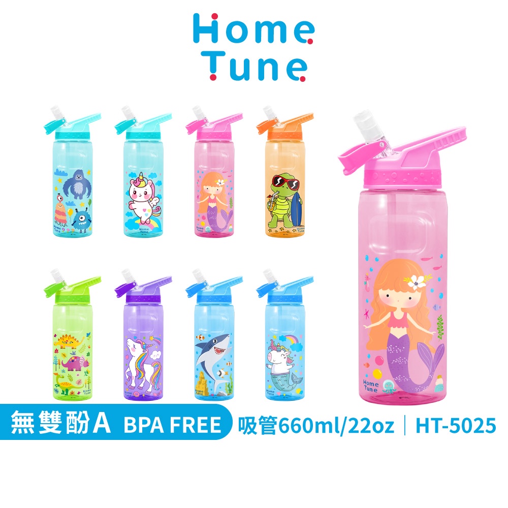 Home Tune家音 兒童翻蓋吸管式水壺22oz/660ml|兒童水壺運動水壺冷水壺半透明水壺吸管水壺_HT-5025美人魚(粉)|獨角獸(紫)|獨角獸(藍綠)|美人魚(藍)|烏龜(橘)|鯊魚(藍)|怪獸(藍綠)|恐龍(綠)OthersHome Tune家音