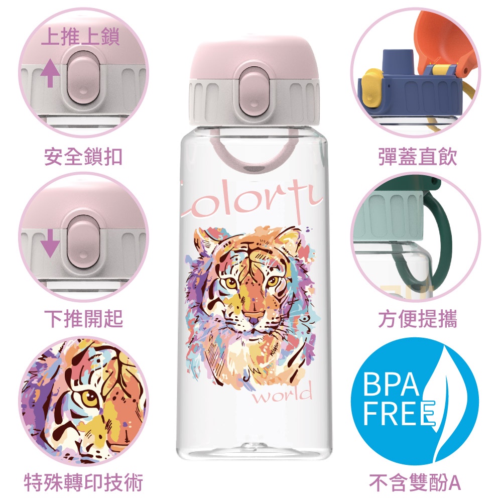 Home Tune家音透明印花旋蓋直飲水壺-18oz/540ml(一組2入)|兒童水壺冷水壺防漏水壺冷水瓶HT-3060