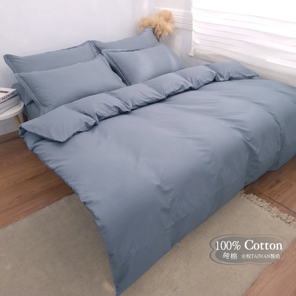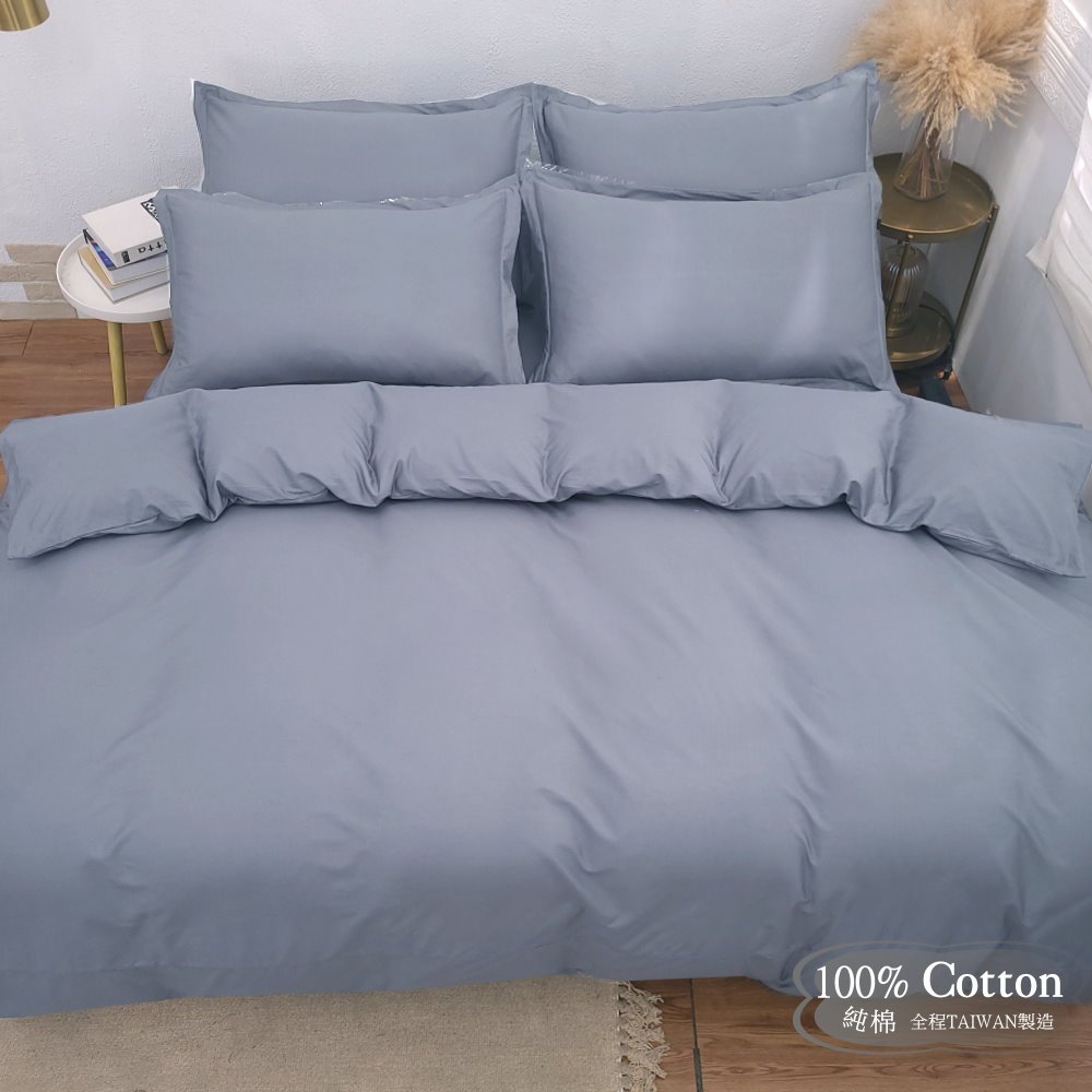 【LUST】素色簡約 中灰 100%純棉/精梳棉床包/歐式枕套 /被套 台灣製造