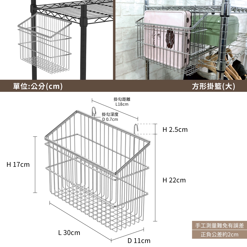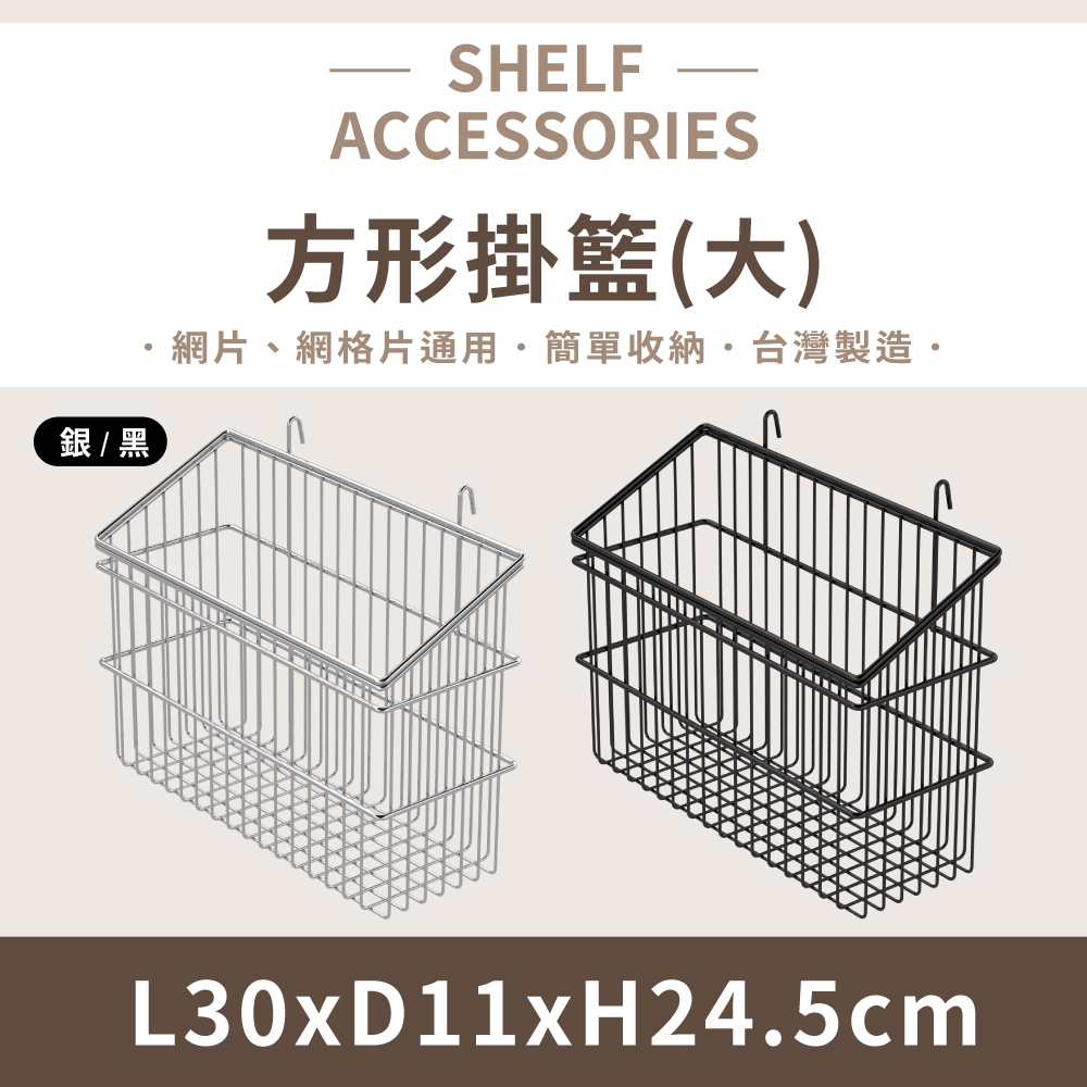 鐵架配件|方形掛籃-大款 30×11.5x24cm(銀/黑)掛籃 置物籃 收納籃 鐵架 廚房收納籃 多功能掛籃方形掛籃 (大,銀)|方形掛籃 (大,黑)Shelves & RacksKIWISH居家生活