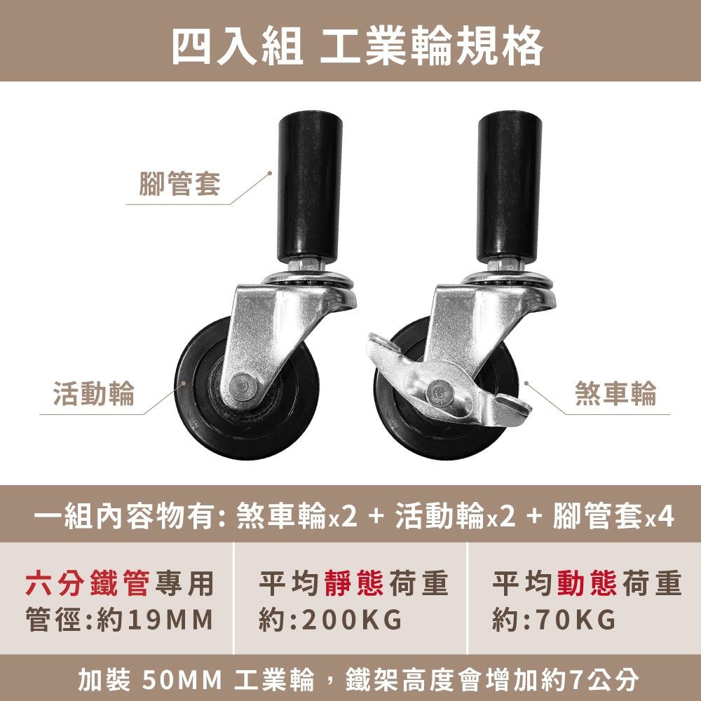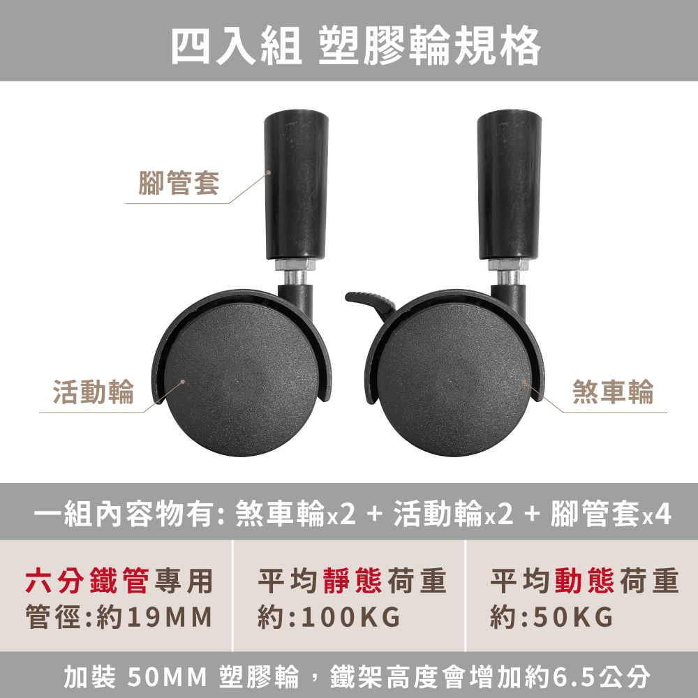 【可超取|適用6分管】工業輪 塑膠輪 搭配43×28、46X40、60X30 層架配件 輪子 兩活兩煞 鐵架配件 移動輪塑膠輪-(兩活動輪+兩煞車輪)|工業輪-(兩活動輪+兩煞車輪)OthersKIWISH居家生活