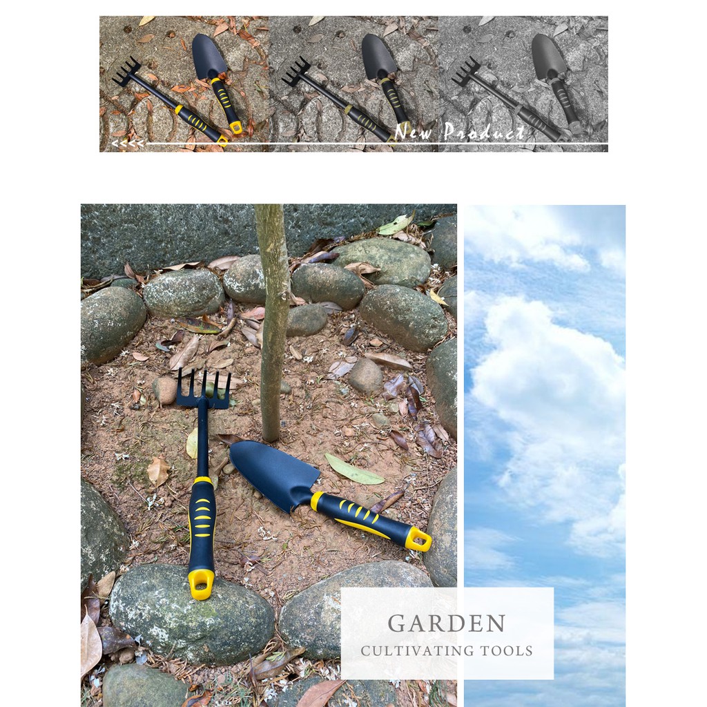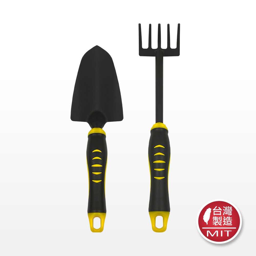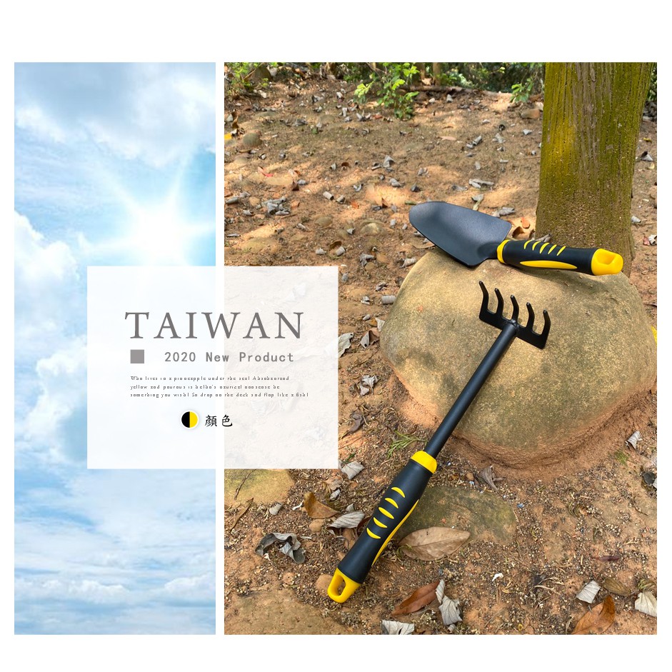 【台灣嚴選】精緻鏟子耙子 (鏟子 耙子 挖土 鬆土 鬆土耙子 鏟耙組 舒適手柄鏟子耙子組)耙子(黑黃)|鏟子Gardening ToolsHOKAS 園藝剪刀