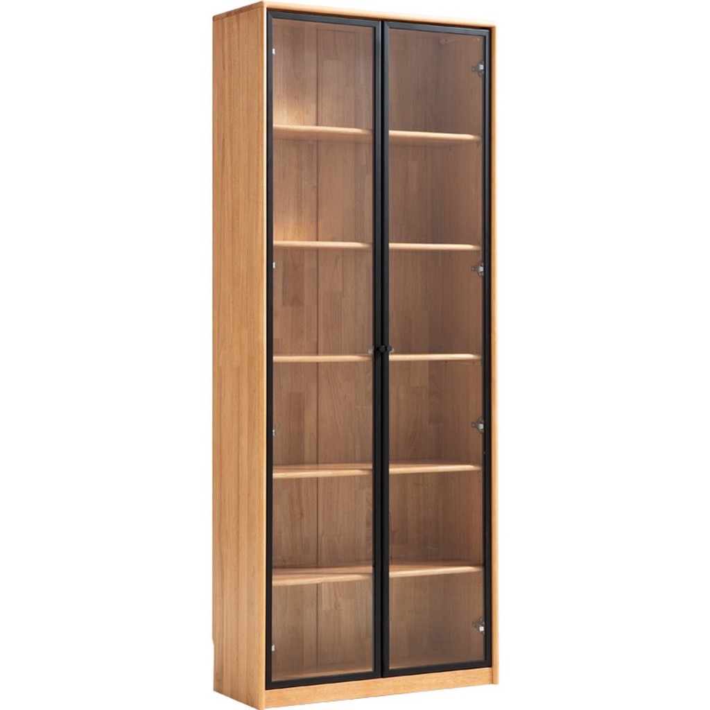 hoi! 林氏木業自然物語若谷實木0.8M玻璃雙門書櫃 PK1X