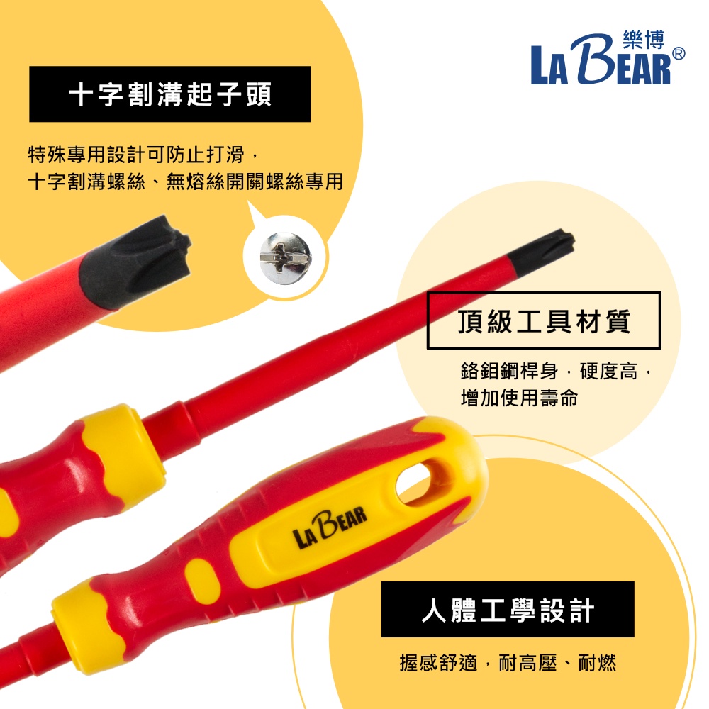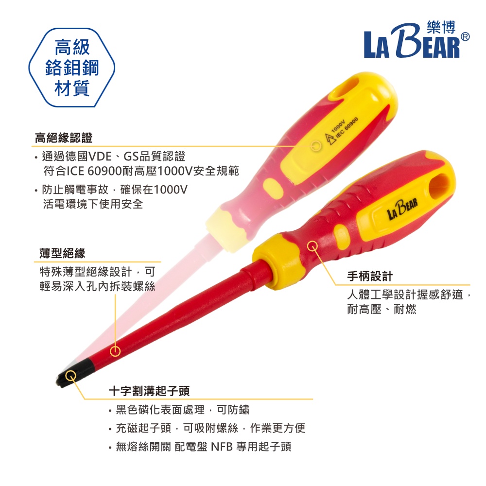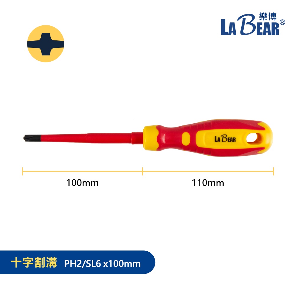 【LaBear】十字割溝 VDE絕緣螺絲起子 PH2/SL6 電工起子 1000V絕緣 絕緣起子 NFB 配電盤專用十字割溝 VDE絕緣起子 PH/FL2ToolsLaBear 樂博工具