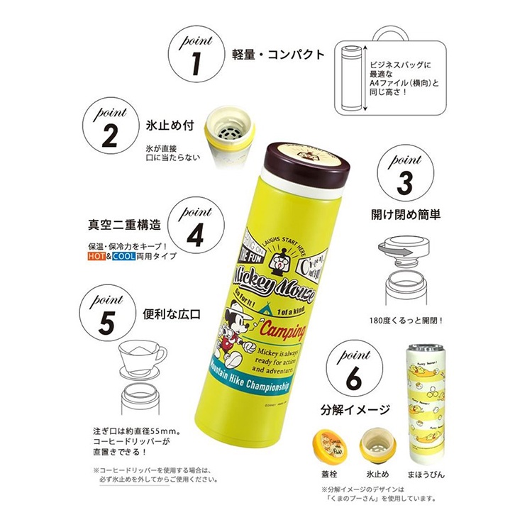PEARL METAL 迪士尼 輕量易開不鏽鋼保溫保冷隨手瓶 500ml米奇|維尼|玩具總動員Water Bottles & Accessoriesfun box 玩具旗艦館