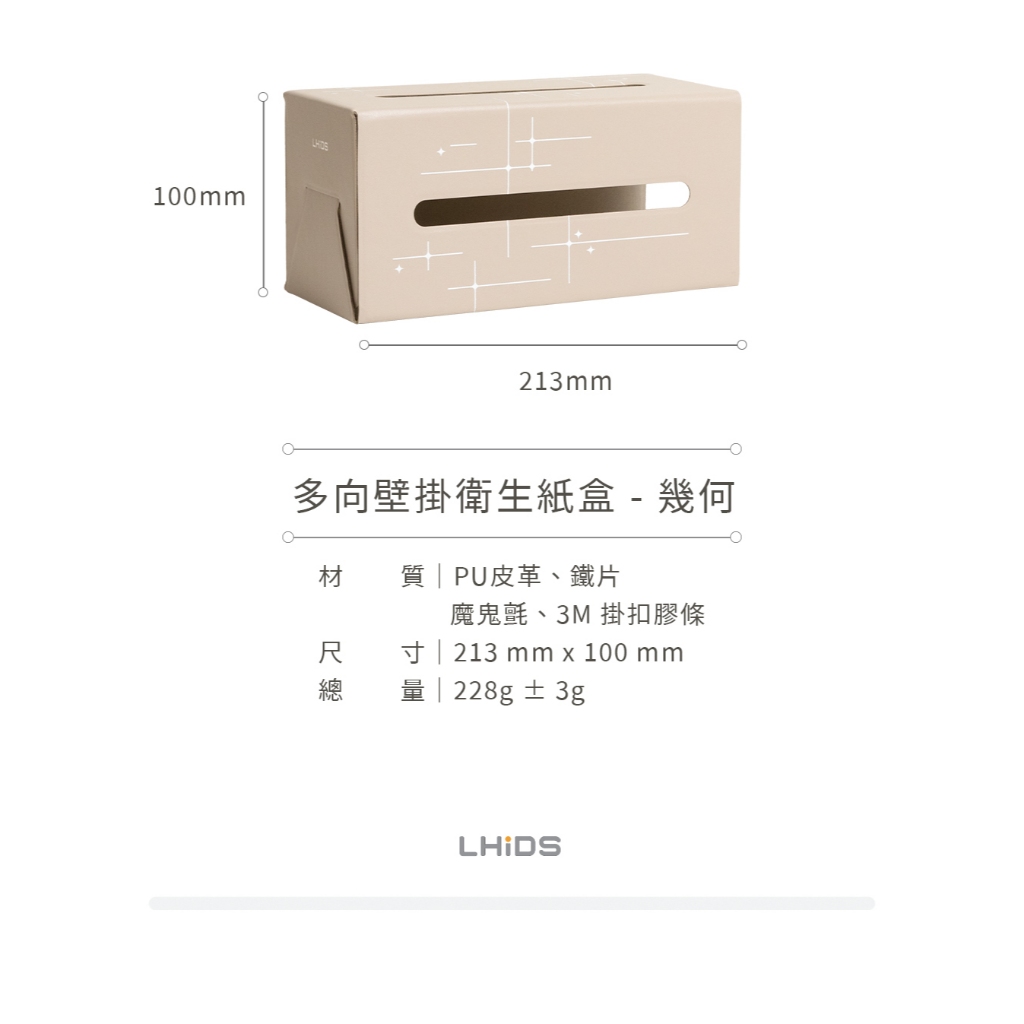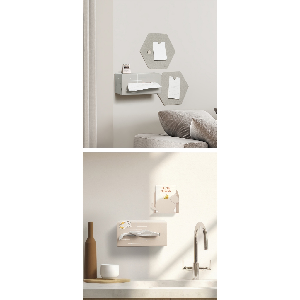 『LHiDS』多向壁掛衛生紙盒 – 幾何 3M / 魔鬼氈 / 磁吸砂礫杏|岩石灰Tissue Holdersjiouu 設計樂生活