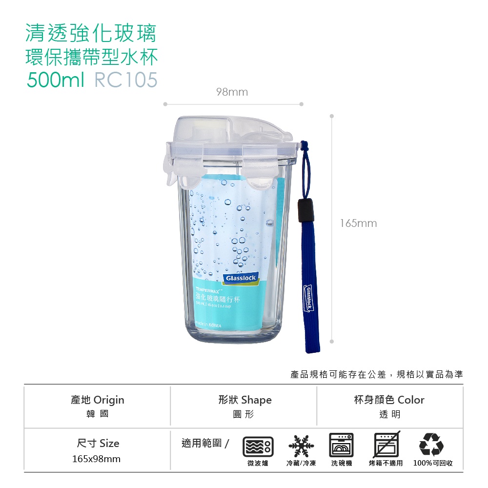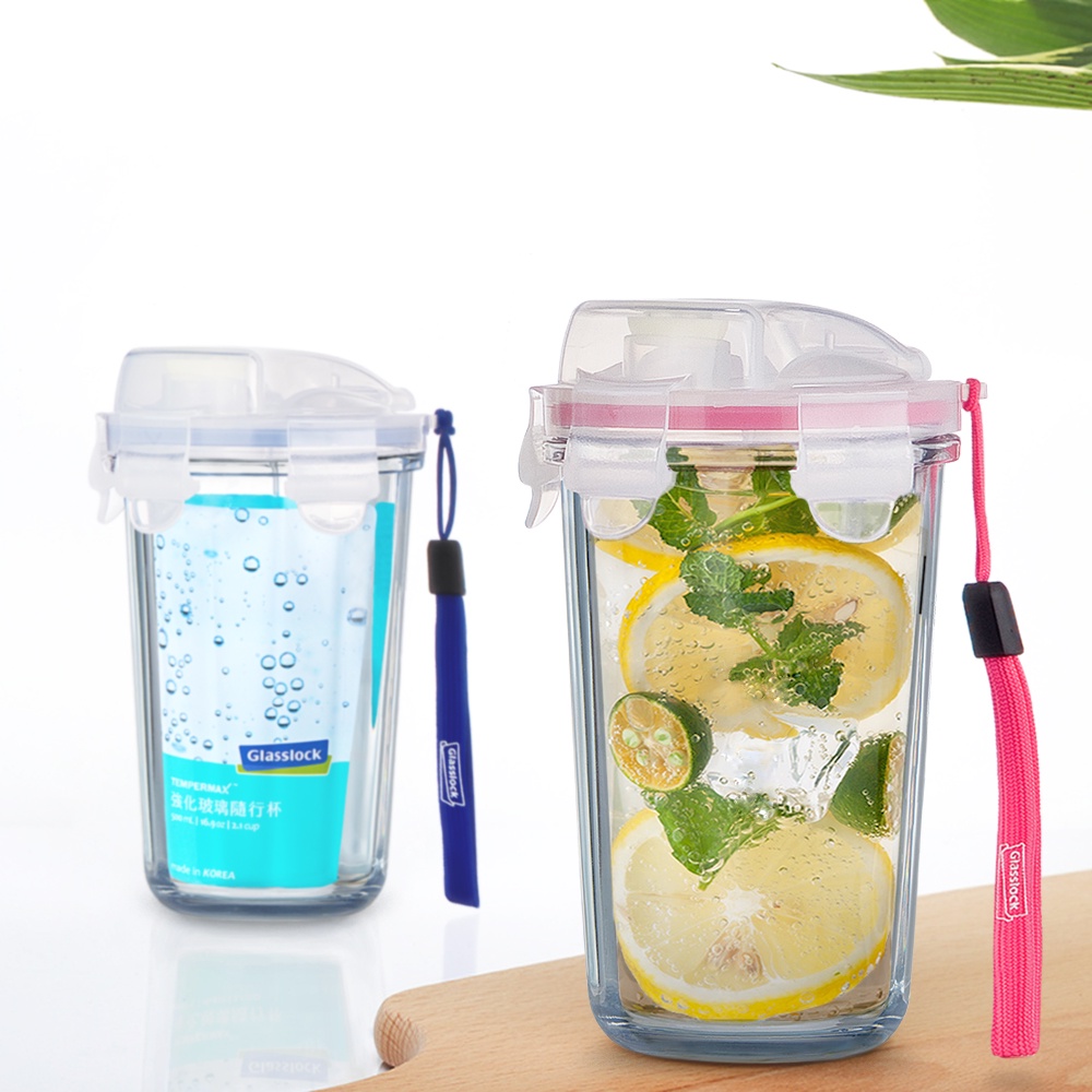 Glasslock 強化玻璃耐熱環保隨行杯500ml-晶透款 (咖啡杯、玻璃杯)透粉|透藍Water Bottles & AccessoriesGlasslock 韓國強化玻璃保鮮盒-官方直營