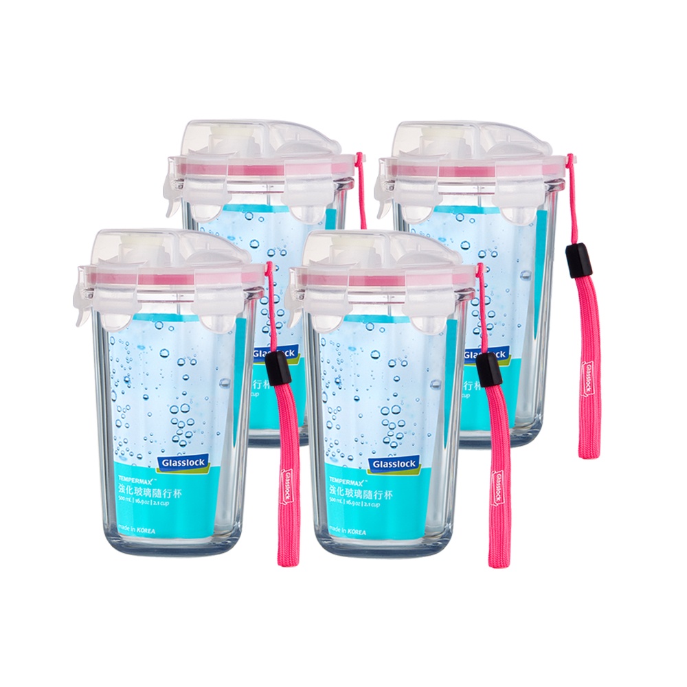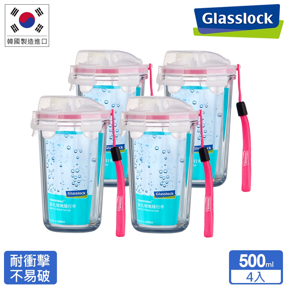 Glasslock 強化玻璃耐熱環保隨行杯500ml-晶透款四入組 /咖啡杯、玻璃杯透粉4入|透藍4入|透藍2入+透粉2入Cups, Mugs & GlassesGlasslock 韓國強化玻璃保鮮盒-官方直營