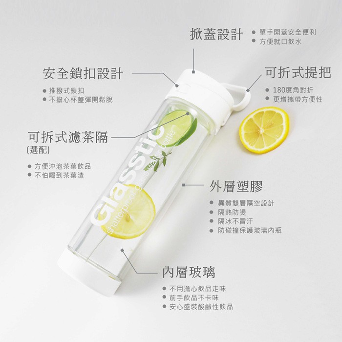 【送圖卡+茶隔】Glasstic 安全防護玻璃水瓶 470ml 送茶隔+圖卡兩張(樣式隨機)白色大LO|黑色大LO|綠色大LO|紫色大LOWater Bottles & AccessoriesGioyell 久越優品
