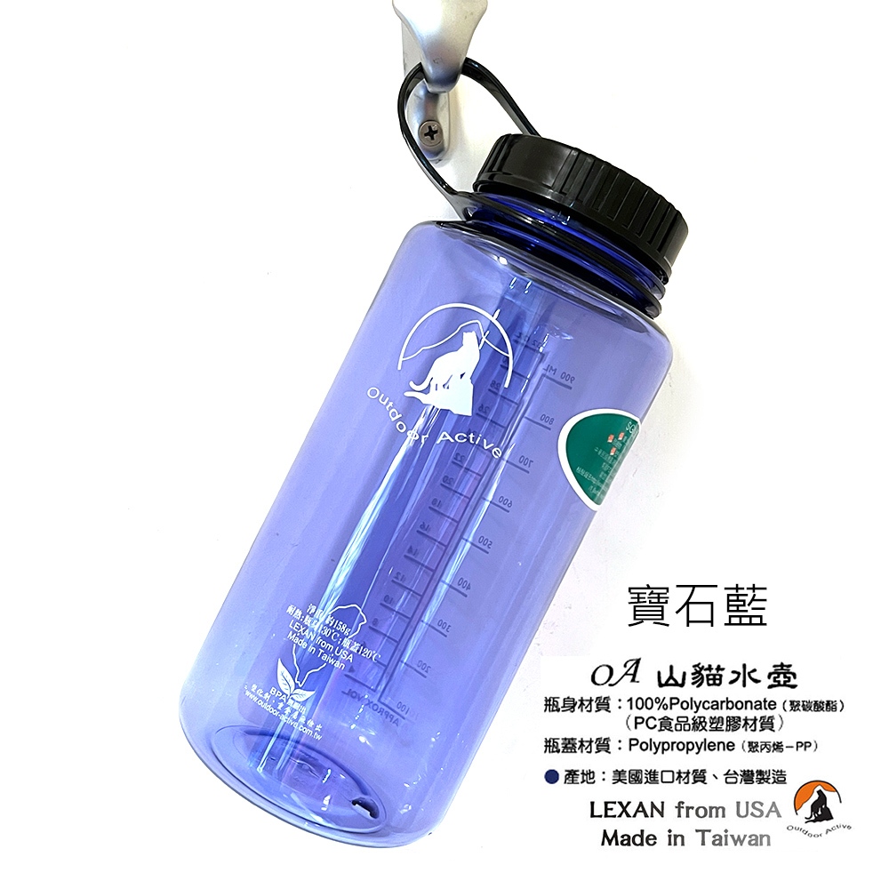 【Outdoor Active】OA山貓 1000cc寬口水壺[四色可選] 隨手瓶 寬口隨手瓶|OA10NGD007寶石藍|鑽石白|水晶紫|夢幻灰Water Bottles & AccessoriesGOHIKING戶外用品專賣店