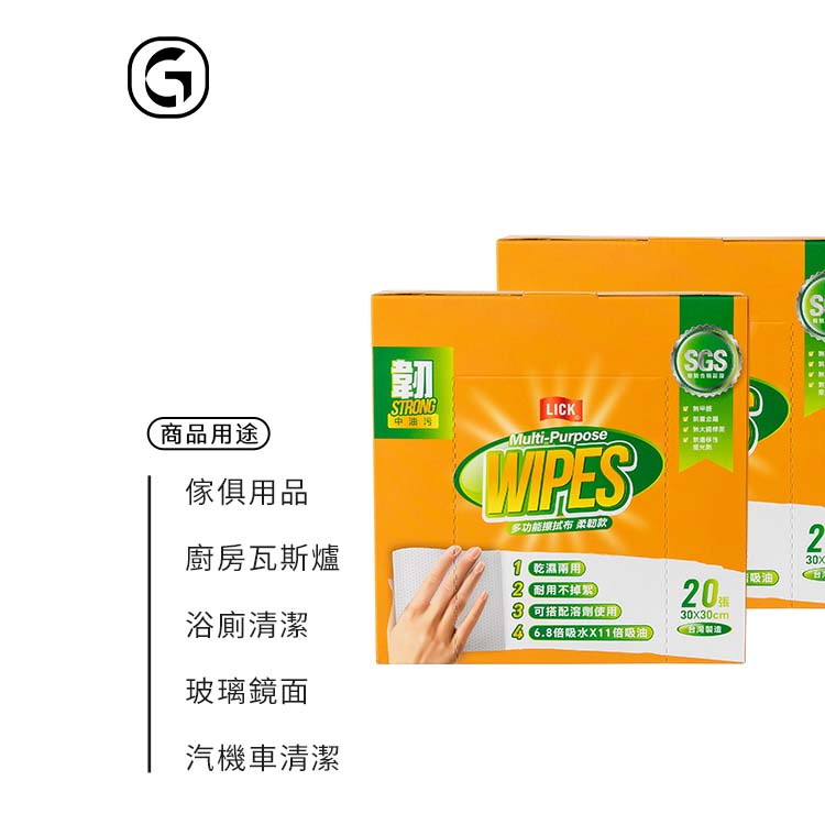 力可潔 LICK【柔韌款擦拭布體驗盒】(20張/盒) 鉅瑋 拋棄式抹布 懶人抹布 摺疊 免洗抹布 廚房抹布 廚房紙巾20張/盒Tissue & Paper TowelsGShop|鉅瑋官方直營店