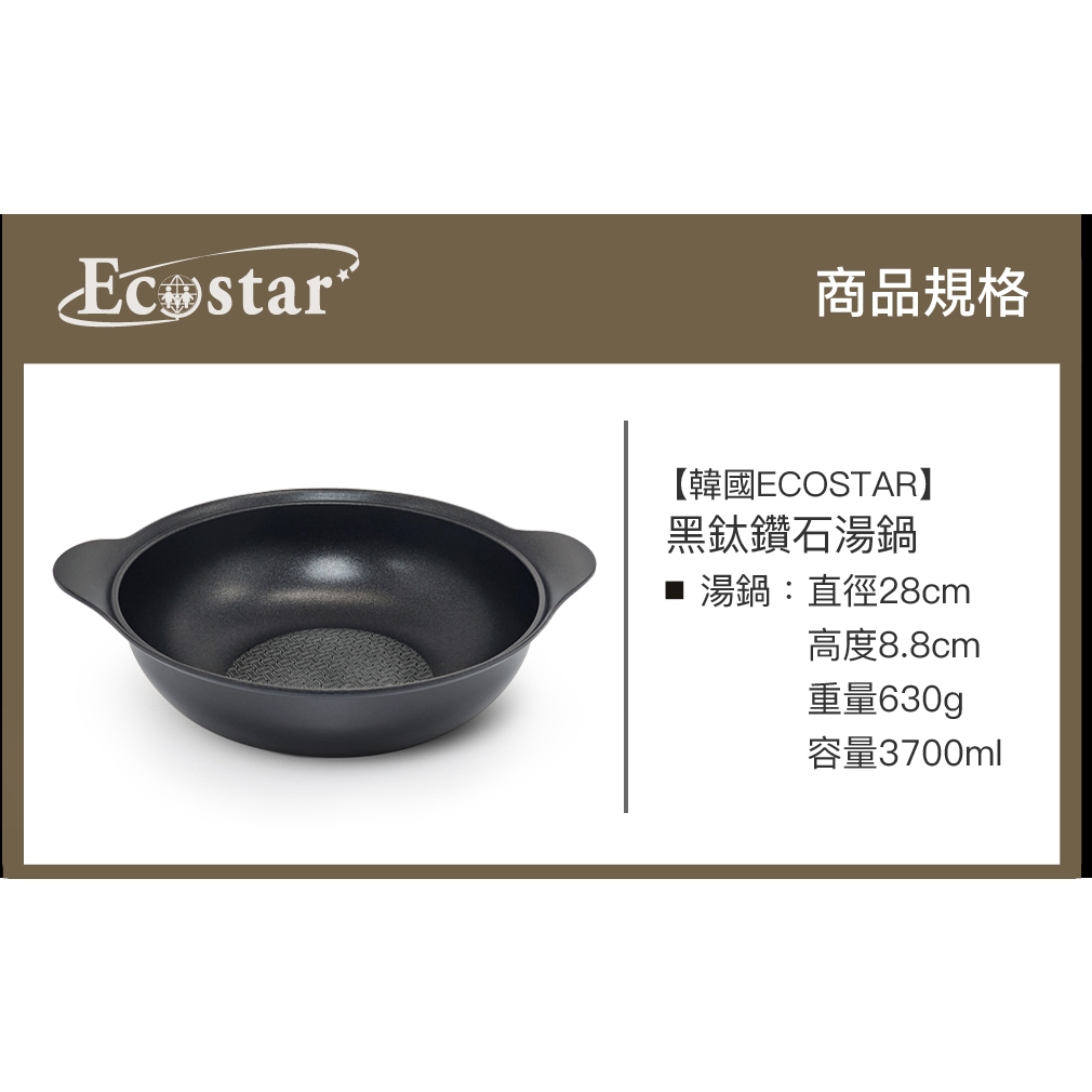 【韓國ECOSTAR】黑鈦鑽石不沾湯鍋28cm(瓦斯爐/IH電磁爐)IH電磁爐適用|瓦斯爐適用PansGu.Kang 固鋼官方旗艦店