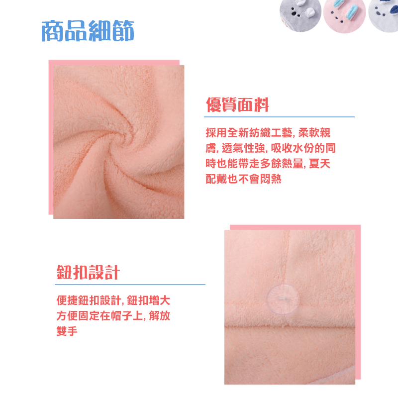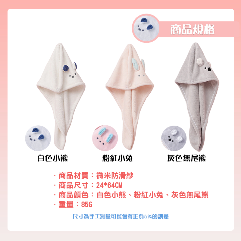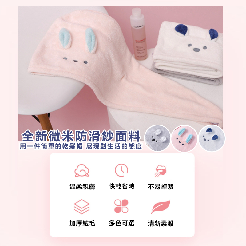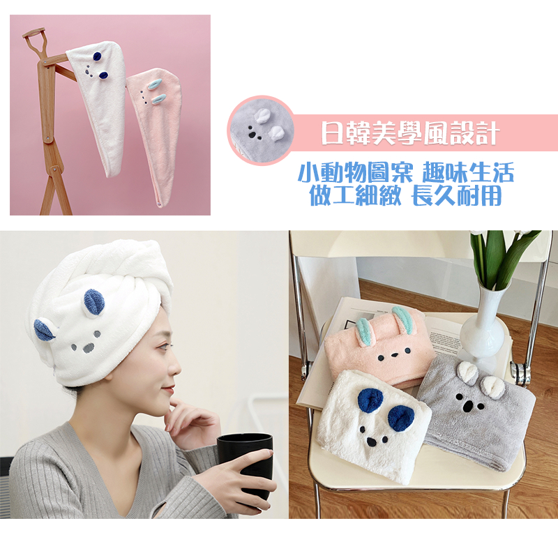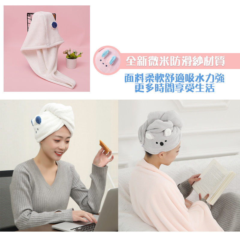 【超吸水乾髮帽】乾髮帽 珊瑚絨乾髮帽 吸水浴帽 日式乾髮帽 擦髮帽 護髮帽 包頭巾白色小熊|粉紅小兔|灰色無尾熊Towels & BathrobesH MOD髮摩 品牌旗艦館