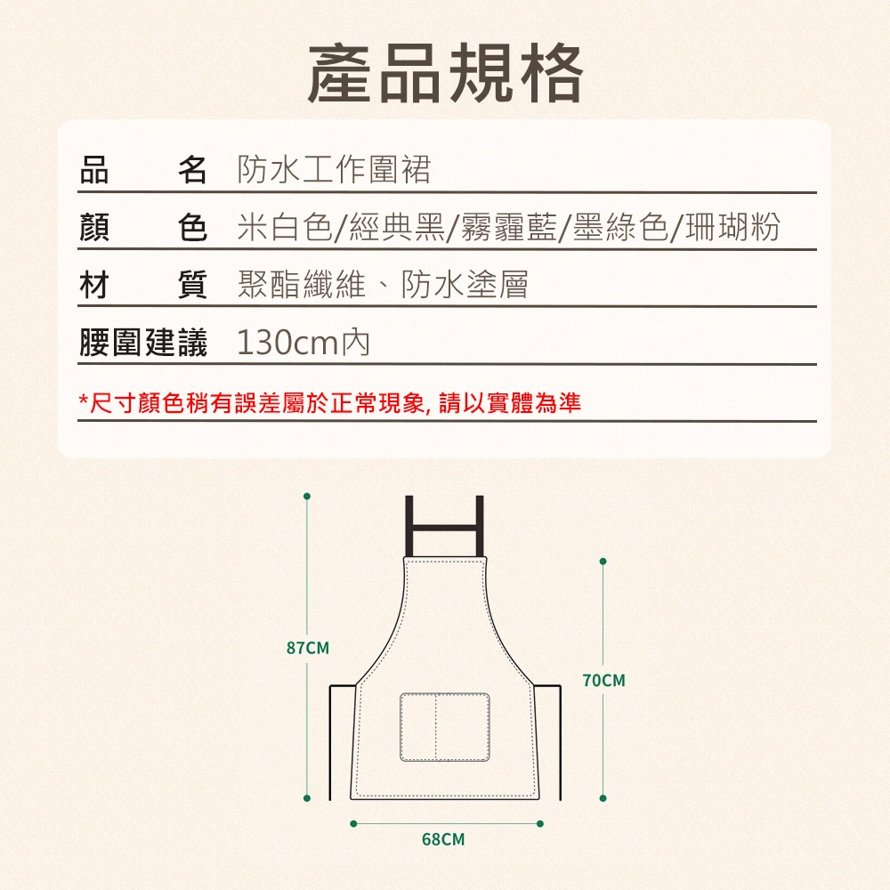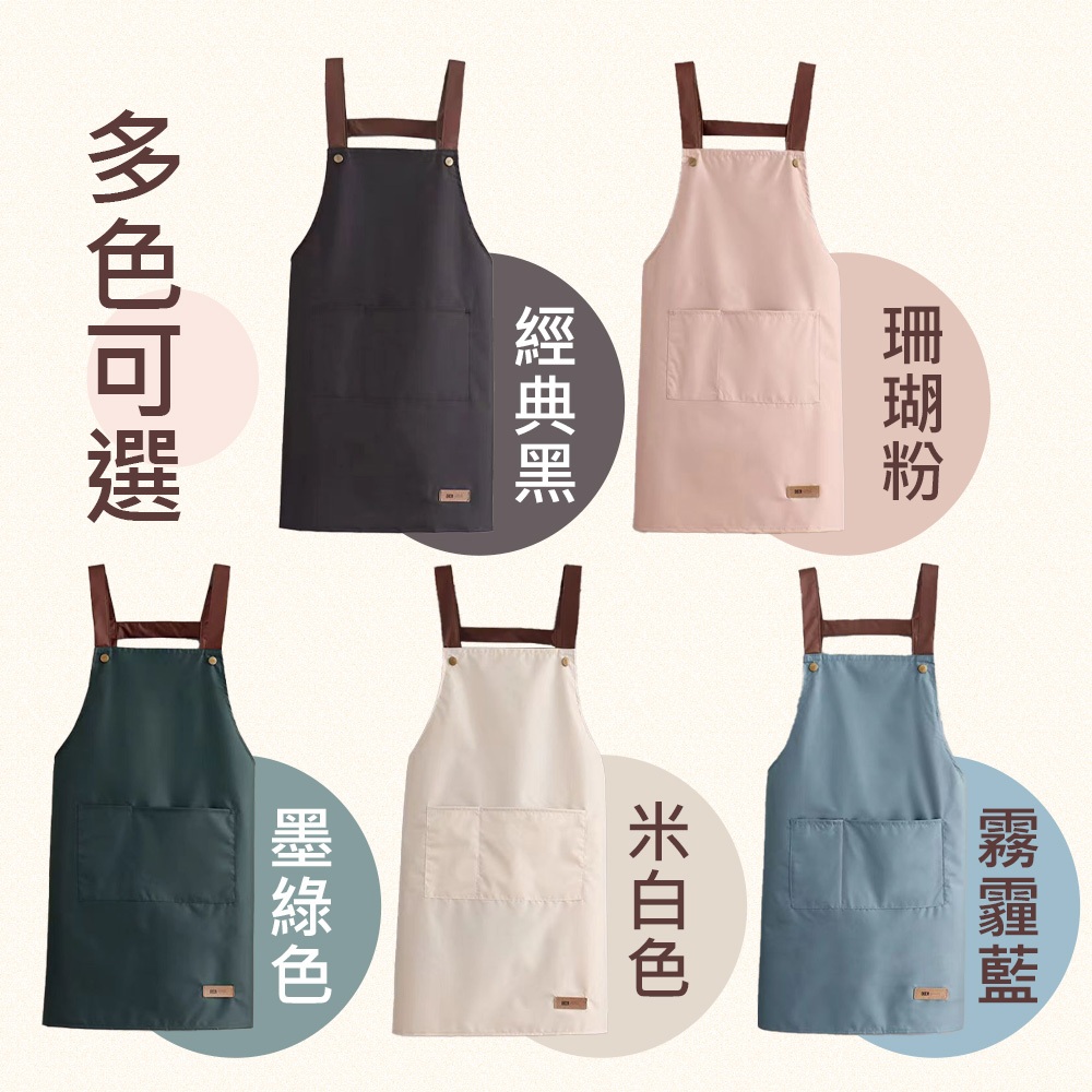 【5色防水工作圍裙】多功能圍裙 多口袋 工作圍裙 烘焙圍裙 咖啡圍裙 防潑水 圍裙工作服 工業風圍裙 口袋圍裙 廚房圍裙珊瑚粉|米白|經典黑|霧霾藍|墨綠Aprons & Kitchen GlovesH MOD髮摩 品牌旗艦館