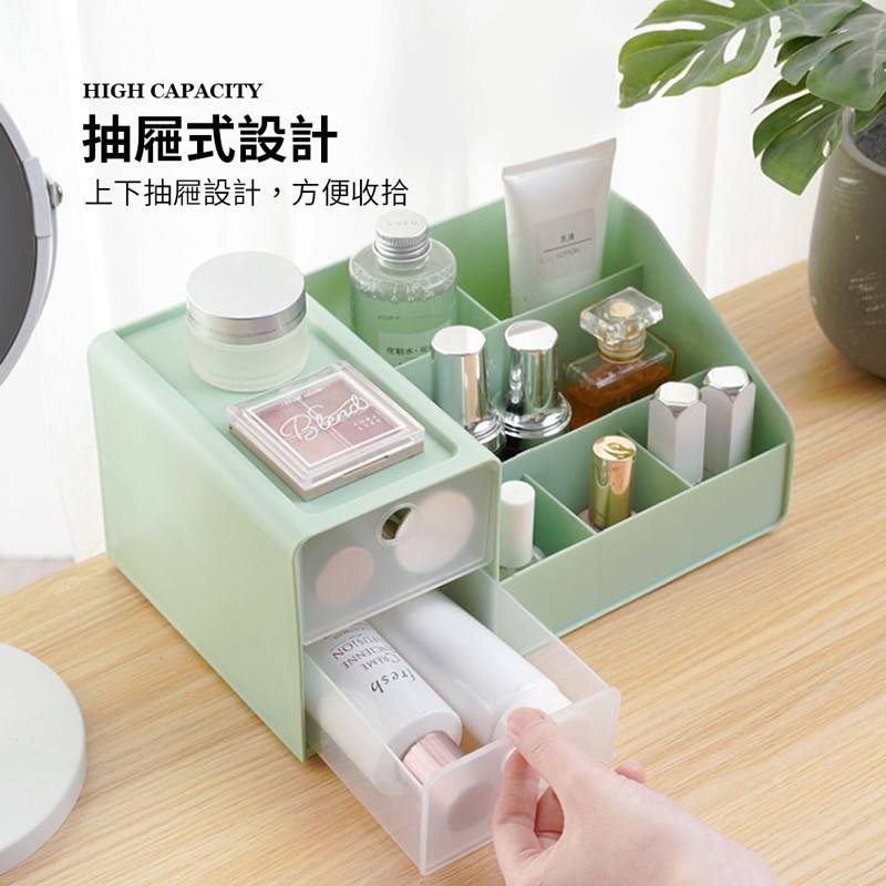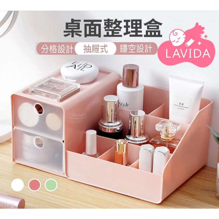 【LAVIDA嚴選】桌面整理盒 桌面抽屜式收納盒 化妝品收納 桌上收納 多格整理盒 透明抽屜櫻花粉|抹茶綠|雪花白Desk OrganizersLAVIDA 育兒好好玩!