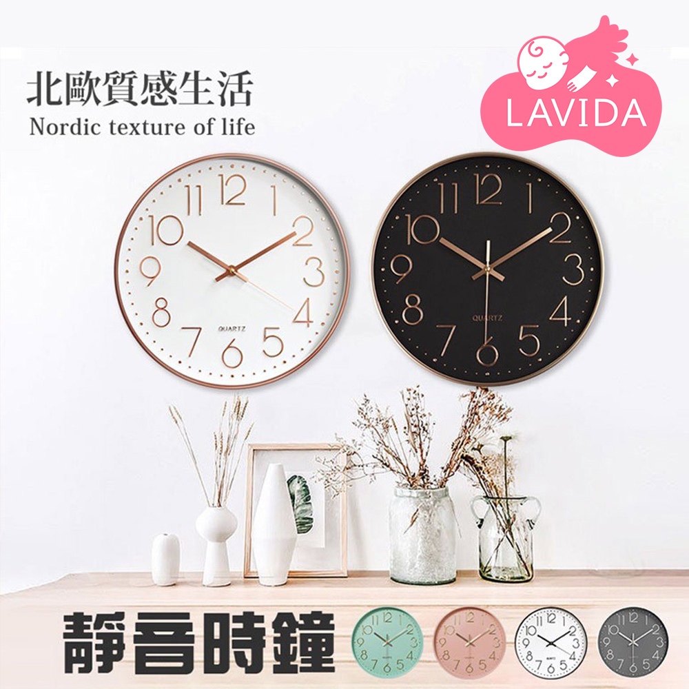 【LAVIDA嚴選】北歐風靜音時鐘 掛鐘 大鐘面 時鐘 鐘 北歐風 簡約 高質感 金屬指針 懸掛 摩登 靜音掃秒電鍍款 白底玫瑰金|電鍍款 黑底玫瑰金|電鍍款 Tiffany綠|電鍍款 粉色|簡約款 黑框白底|簡約款 灰底白字ClocksLAVIDA 育兒好好玩!