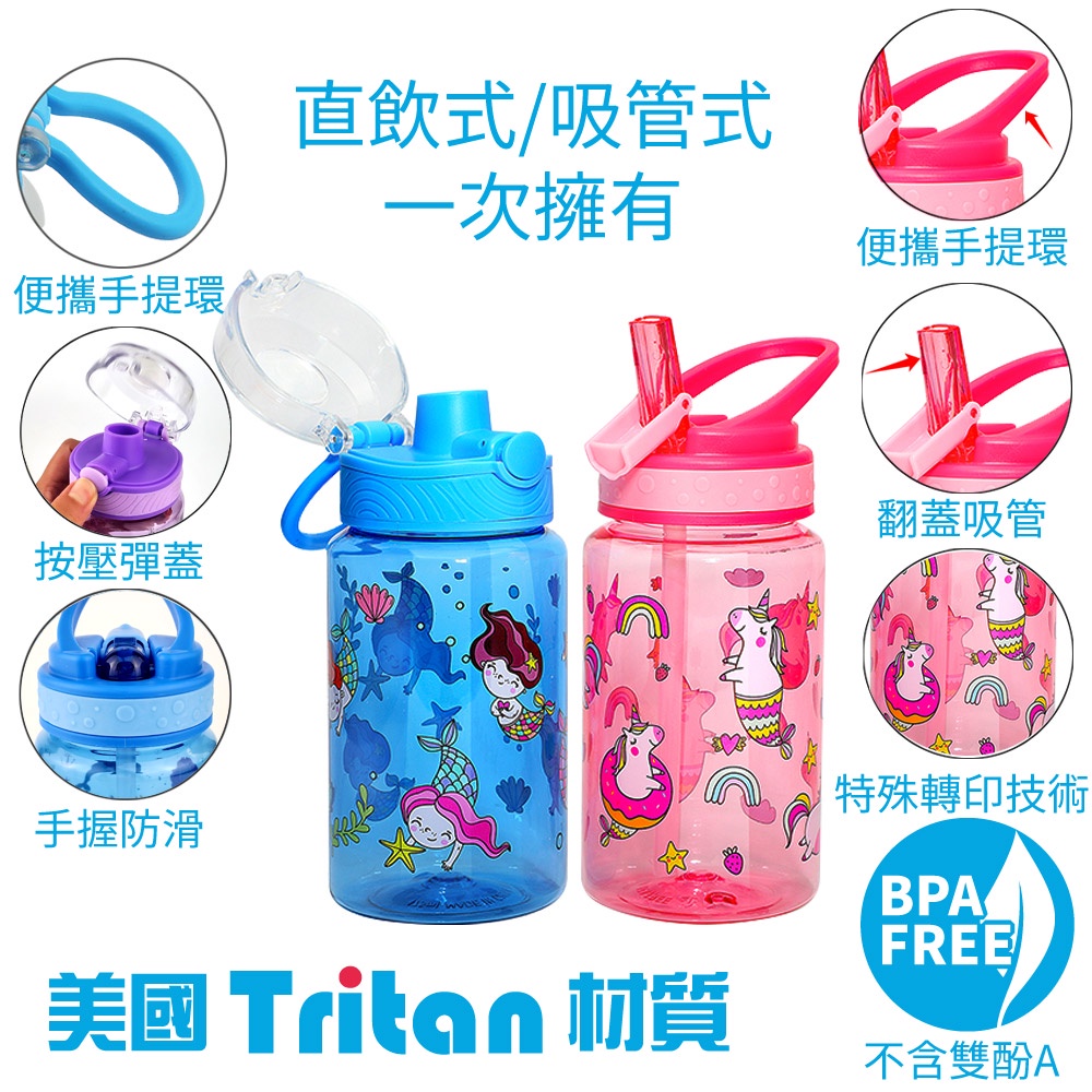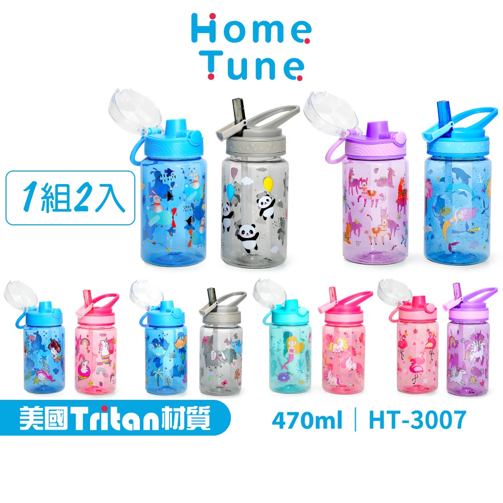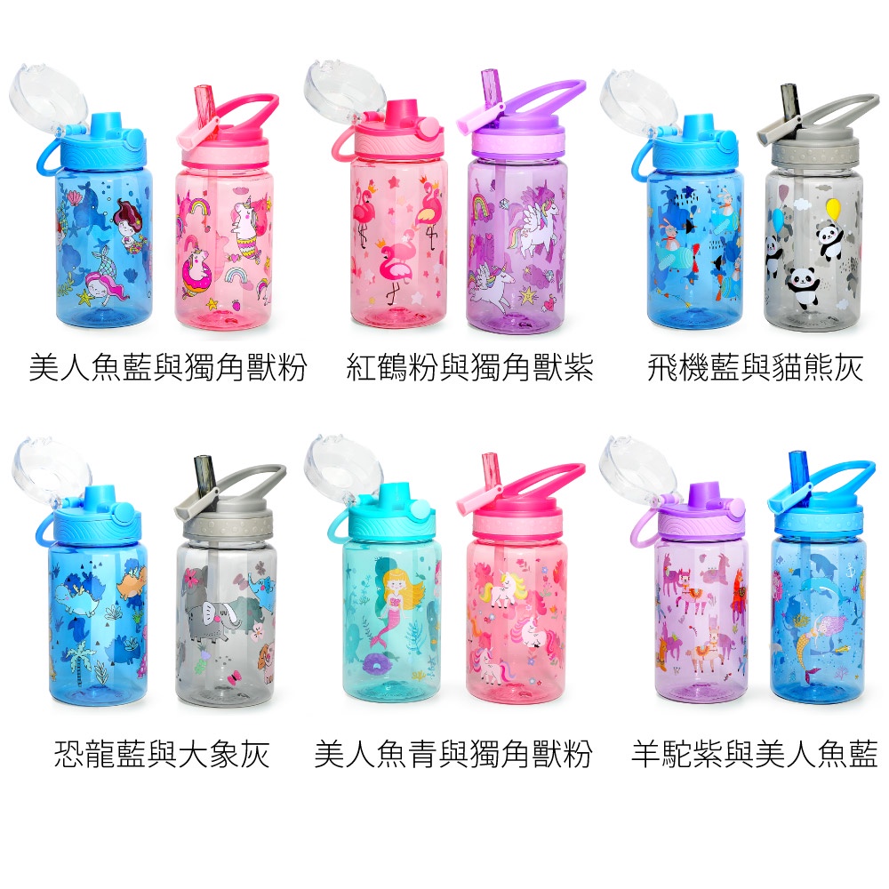 Home Tune家音 翻蓋吸管水壺/直飲水壺420~470ml/2入|Tritan水壺兒童水壺透明水壺_HT-3007羊駝紫與美人魚藍(420ml)|美人魚藍與獨角獸粉(470ml)|紅鶴粉與獨角獸紫(420ml)|飛機藍與貓熊灰(470ml)|恐龍藍與大象灰(470ml)|美人魚青獨角獸粉(470ml)Water Bottles & AccessoriesHome Tune家音