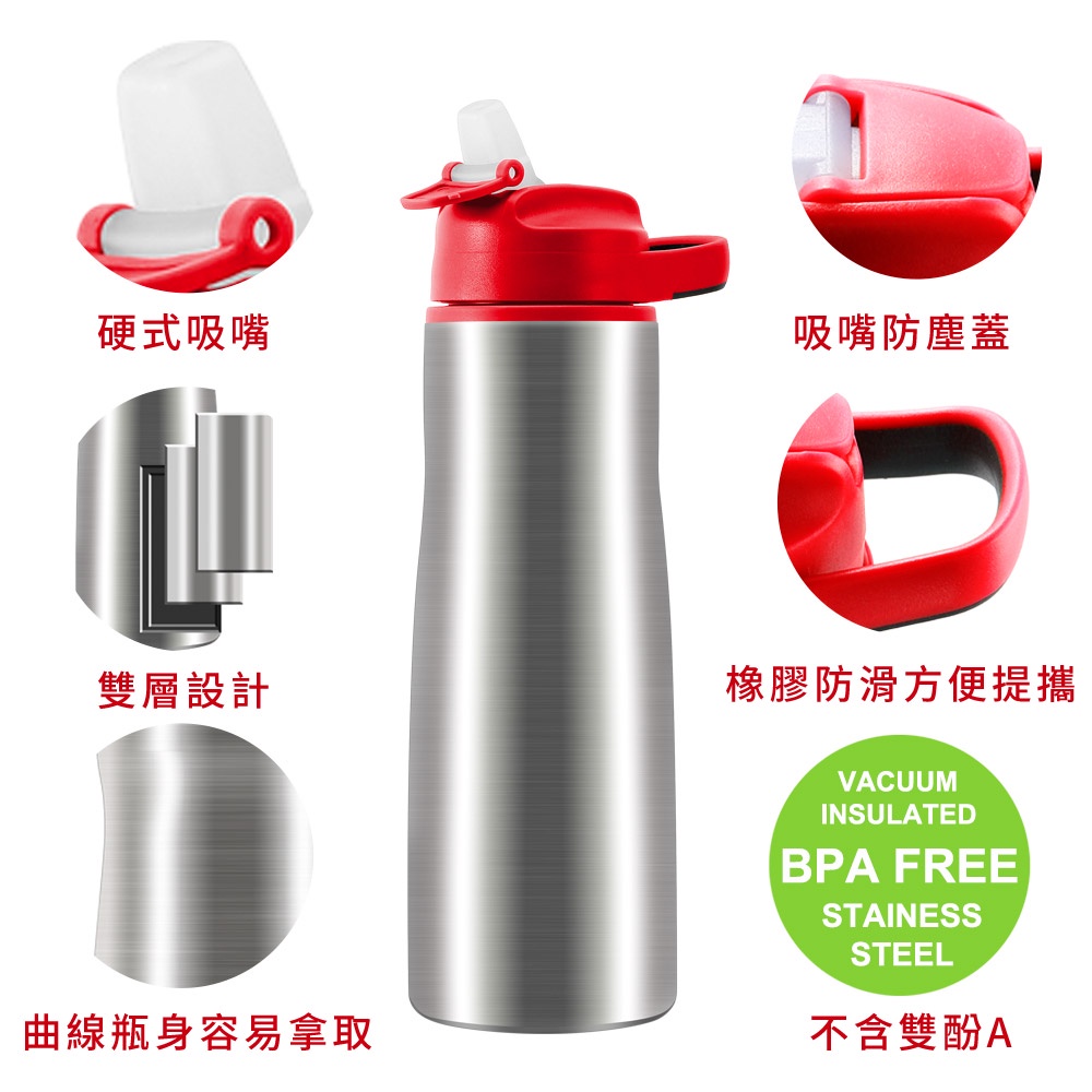 Home Tune家音 304不鏽鋼翻蓋吸管式水壺26oz/780ml|雙層真空保溫保冰水壺吸管水壺_HT-3029藍綠色|紅色|藍色|灰色Water Bottles & AccessoriesHome Tune家音