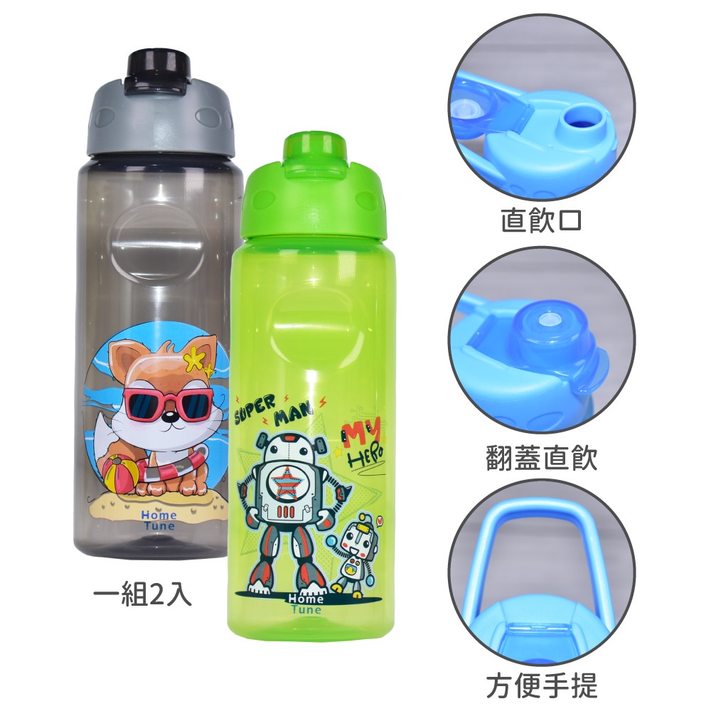 Home Tune家音 翻蓋直飲水壺23oz/690ml(一組2入)|兒童水壺運動水壺冷水壺透明水壺_HT-3058