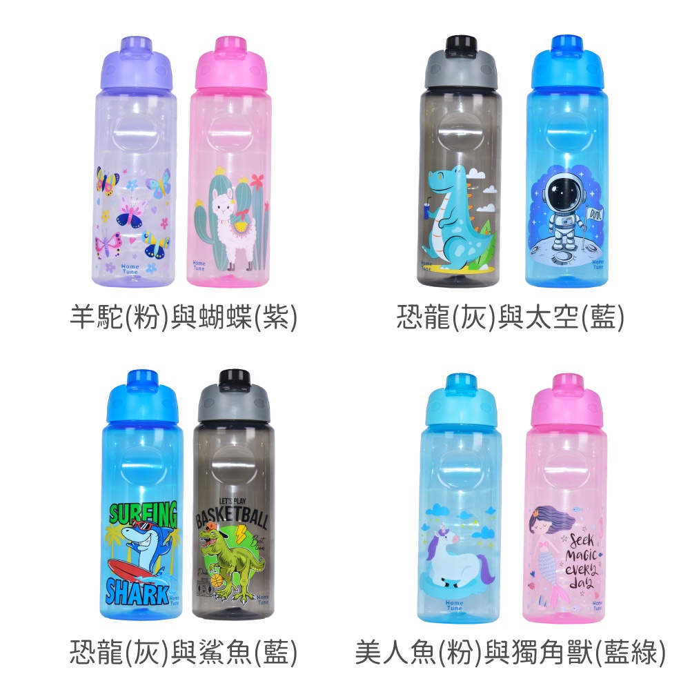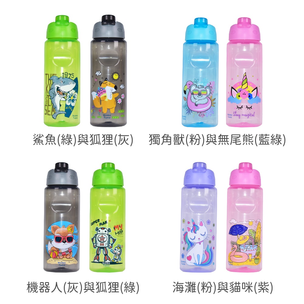 Home Tune家音 翻蓋直飲水壺23oz/690ml(一組2入)|兒童水壺運動水壺冷水壺透明水壺_HT-3058海灘(粉)與貓咪(紫)|機器人(綠)與狐狸(灰)|恐龍(灰)與鯊魚(藍)|獨角獸(粉)與無尾熊(藍綠)|羊駝(粉)與蝴蝶(紫)|鯊魚(綠)與狐狸(灰)|恐龍(灰)與太空(藍)|美人魚(粉)與獨角獸(藍綠)OthersHome Tune家音