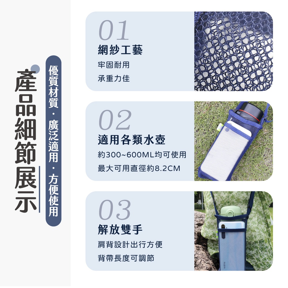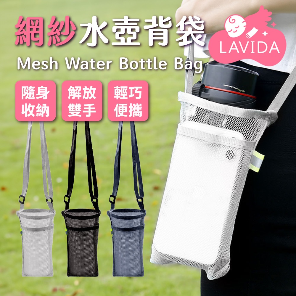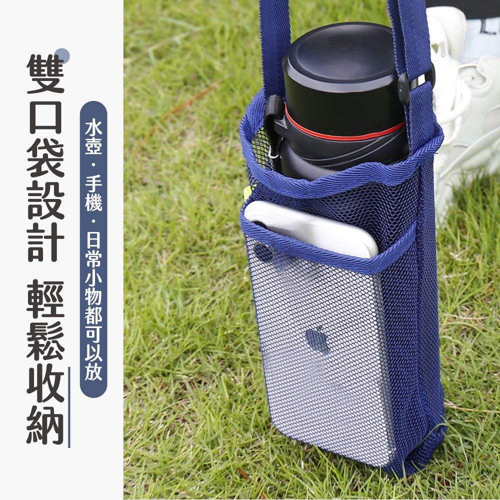 網紗水壺背袋 水壺背袋 水壺網袋 飲料提袋 水瓶袋 水壺袋 多色可選 可放手機 戶外郊遊 登山野餐灰色|黑色|藏青OthersLAVIDA 育兒好好玩!