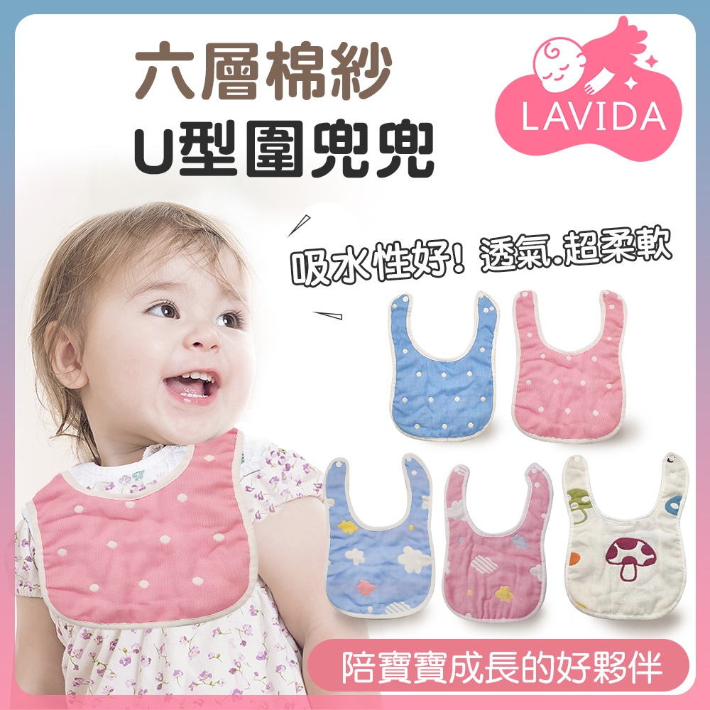 【LAVIDA嚴選】U型六層紗口水巾 紗布巾 圍兜 吃飯圍兜藍底雲朵|藍底白點|蘑菇Towels & BathrobesLAVIDA 育兒好好玩!