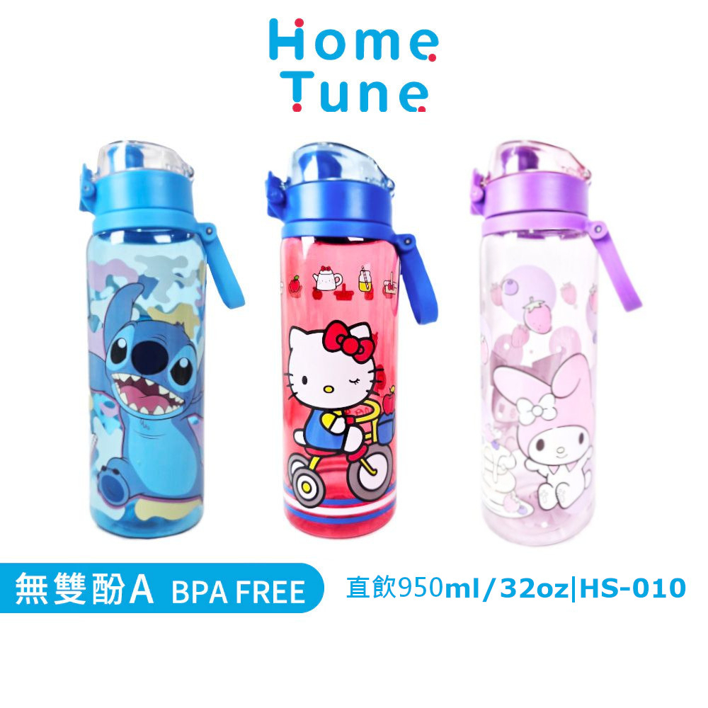 Home Tune家音 鎖扣彈蓋直飲水壺32oz/950ml|透明水壺運動水壺刻度水壺_HS-010史迪奇|庫洛米&美樂地|Hello KittyWater Bottles & AccessoriesHome Tune家音