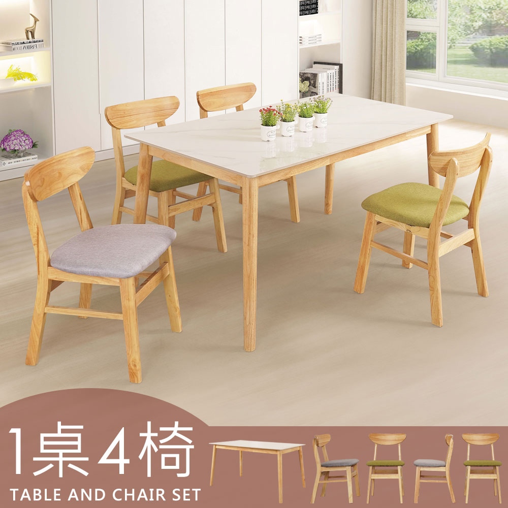 Homelike 喜家居岩板餐桌椅組(一桌四椅)(2363-22) 實木餐桌 桌子 椅子 北歐風(一桌四椅)-四灰椅|(一桌四椅)-四綠椅|(一桌四椅)-二灰二綠椅Desks & TablesHomelike
