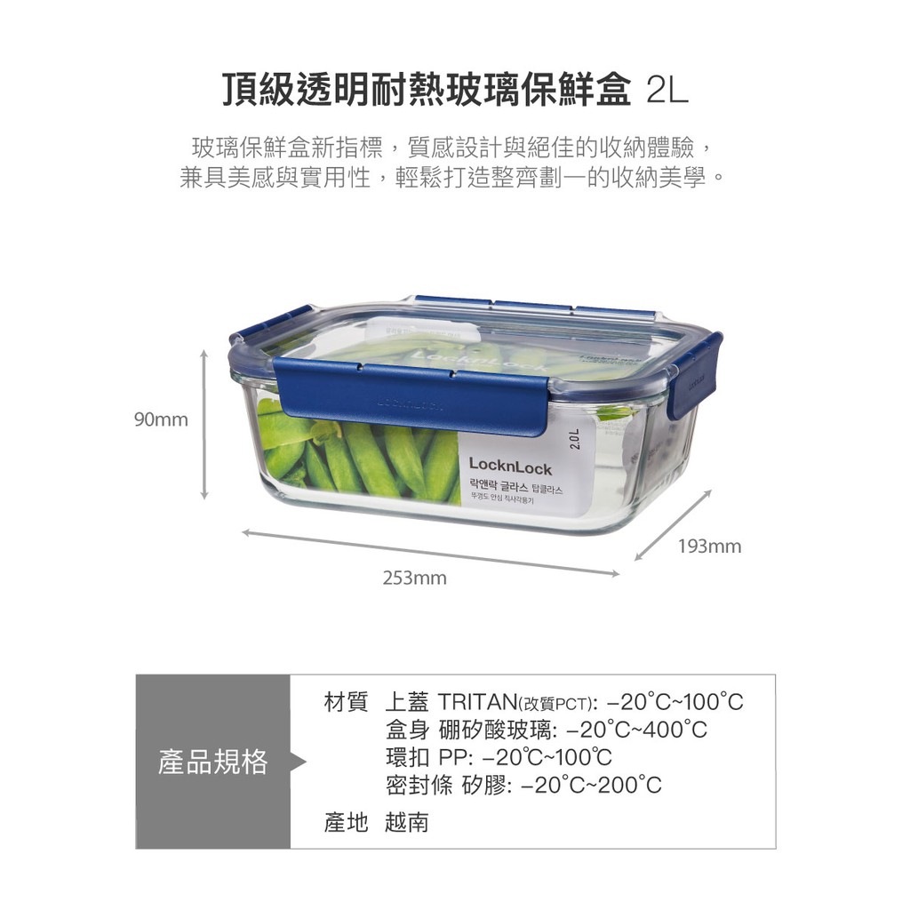 【樂扣樂扣】頂級透明耐熱玻璃保鮮盒/2000ML/長方形長方形/2000MLFood StorageLocknLock樂扣樂扣旗艦店