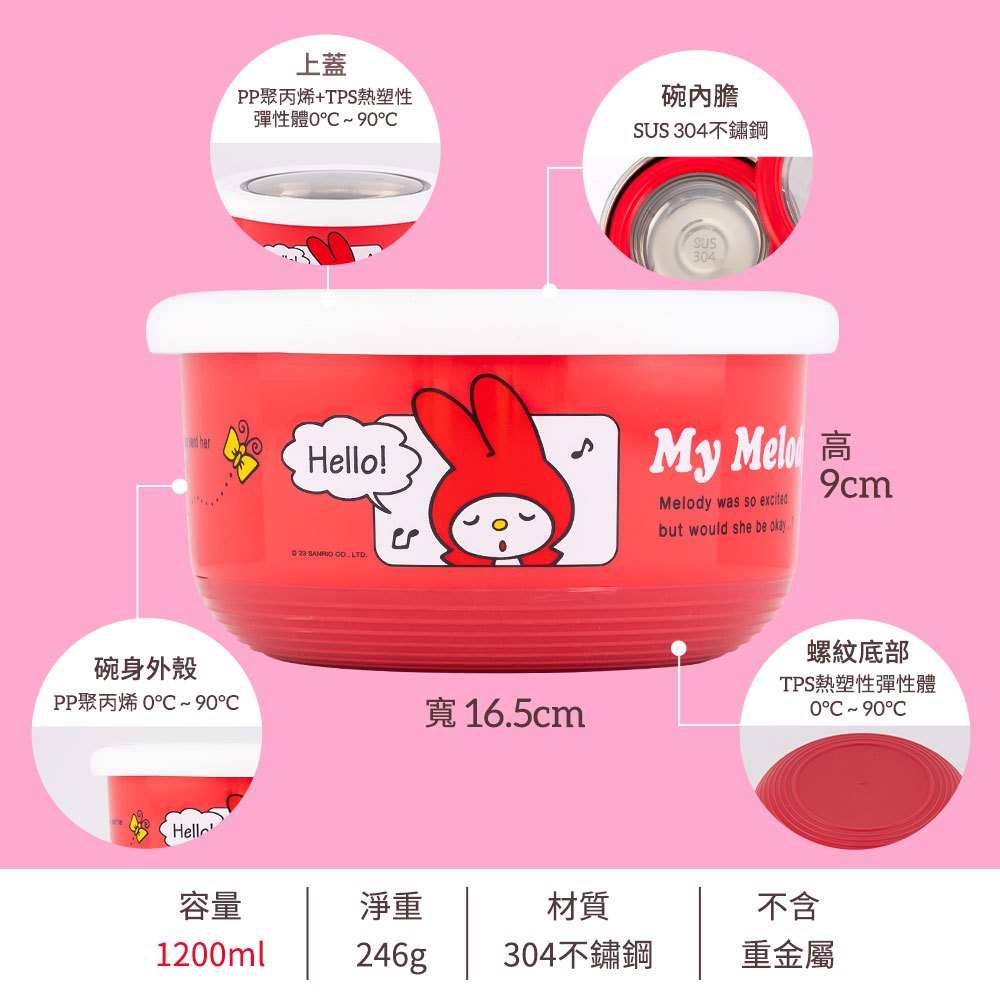 【HOUSUXI官方旗艦】三麗鷗美樂蒂不鏽鋼雙層隔熱碗(款式任選)-絕版品售完不補美樂蒂-420ml|美樂蒂-730ml|美樂蒂-1200mlFood StorageHOUSUXI 舒希官方旗艦店