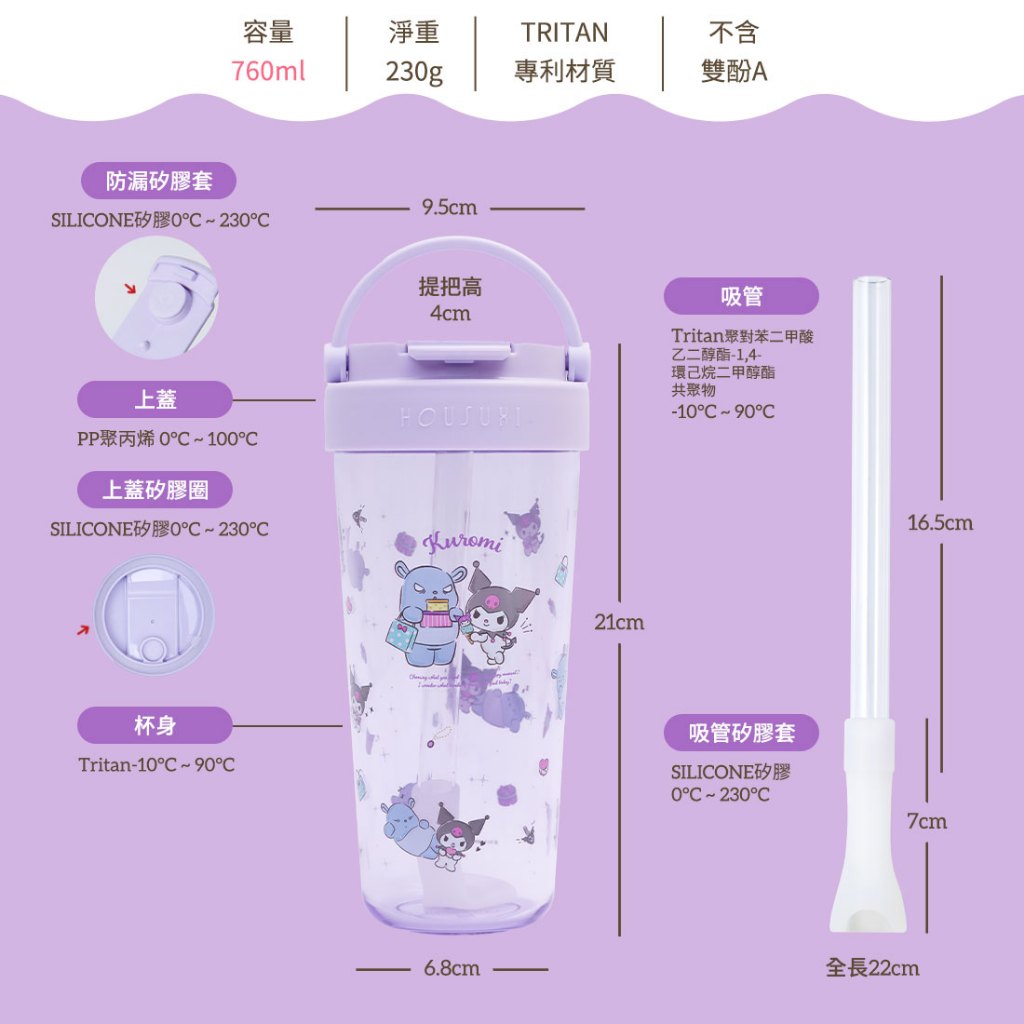 【HOUSUXI官方旗艦】三麗鷗酷洛米-Tritan輕透舒吸杯(附彈跳吸管)760ml