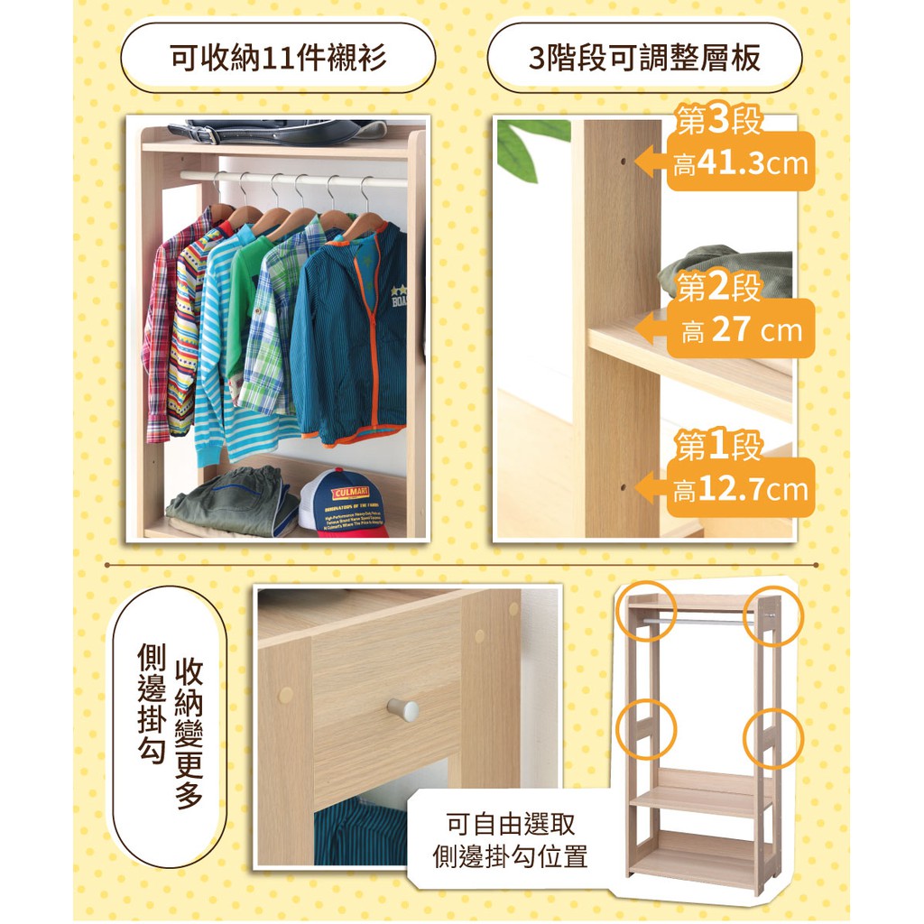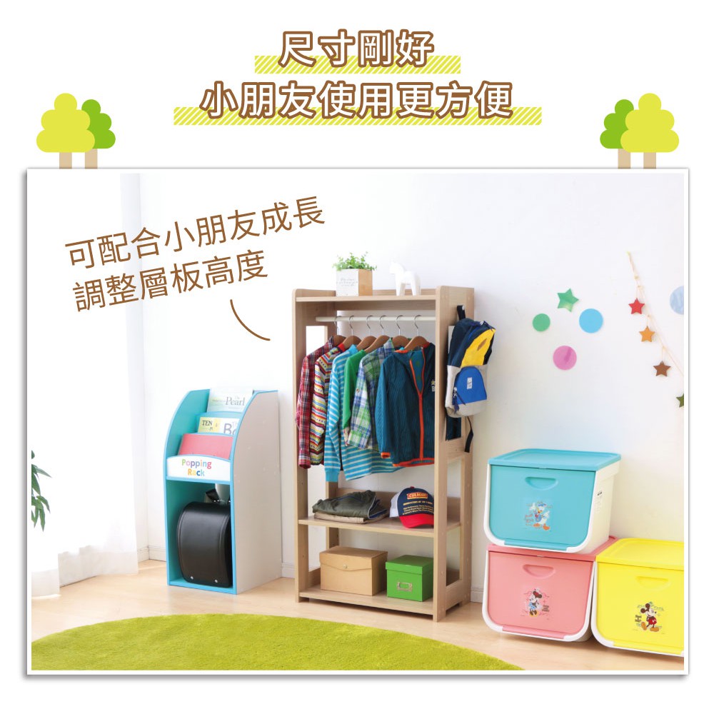 IRIS OHYAMA 木製可調層板圓角收納兒童掛衣架 KWR-1260(衣櫃/置物架)原木色|棕色Hangers & PegsIRIS OHYAMA 台灣愛麗思歐雅瑪