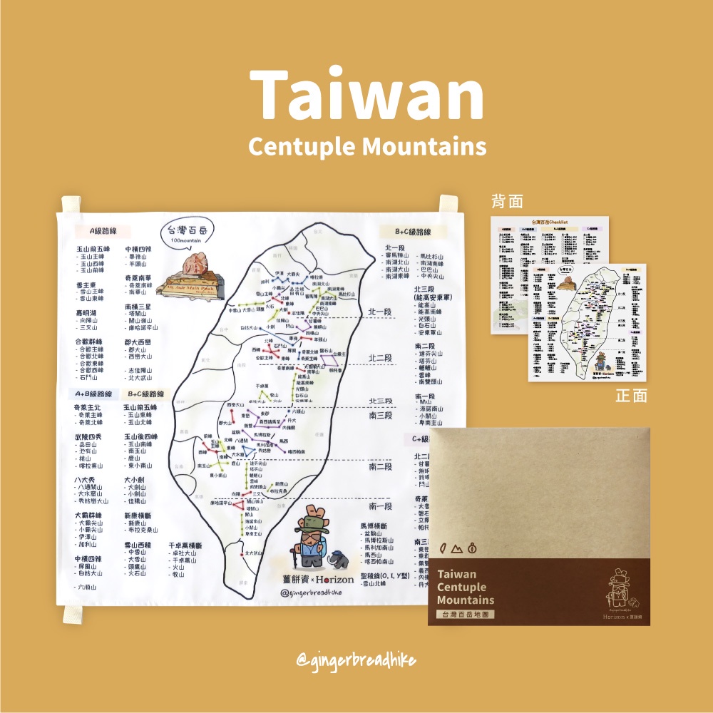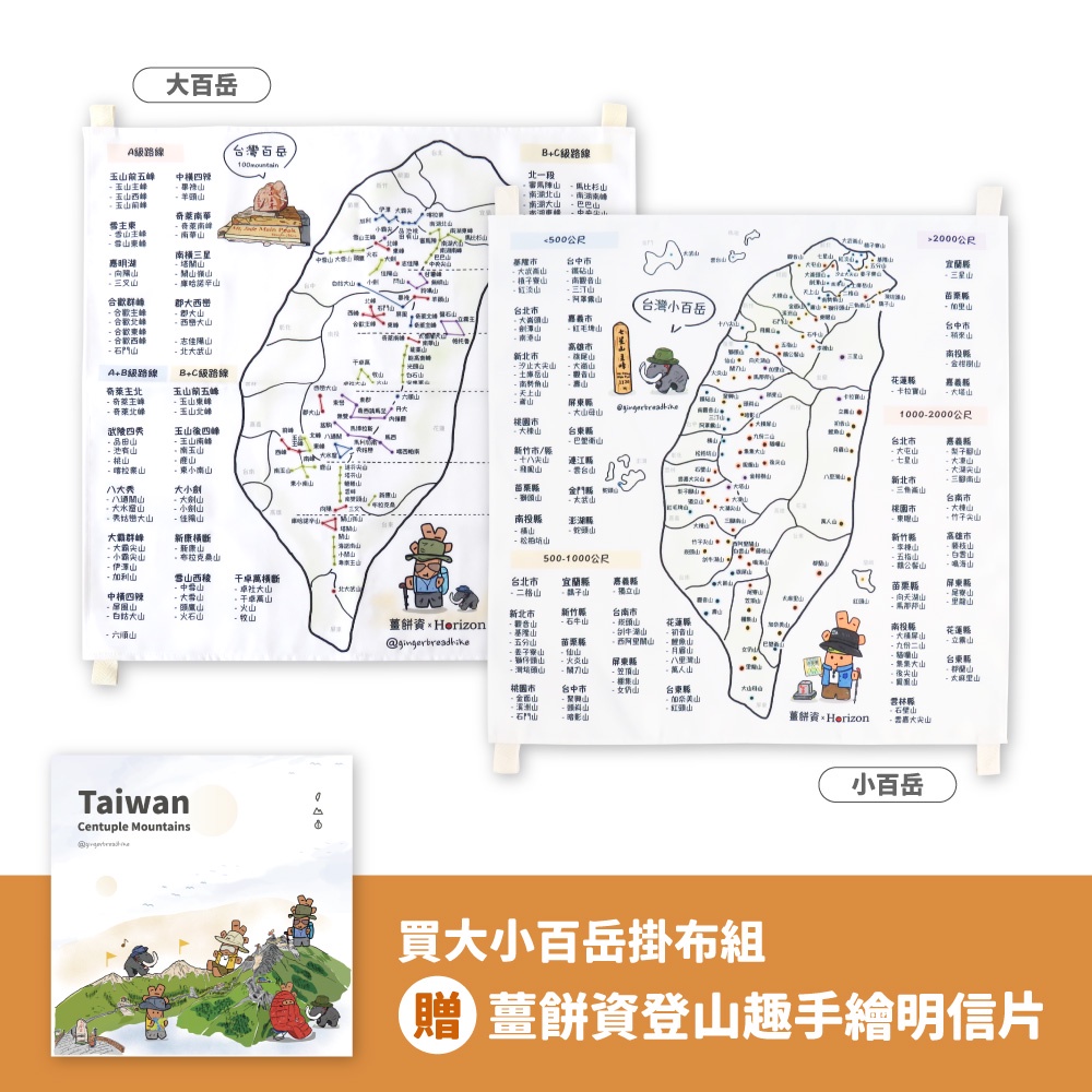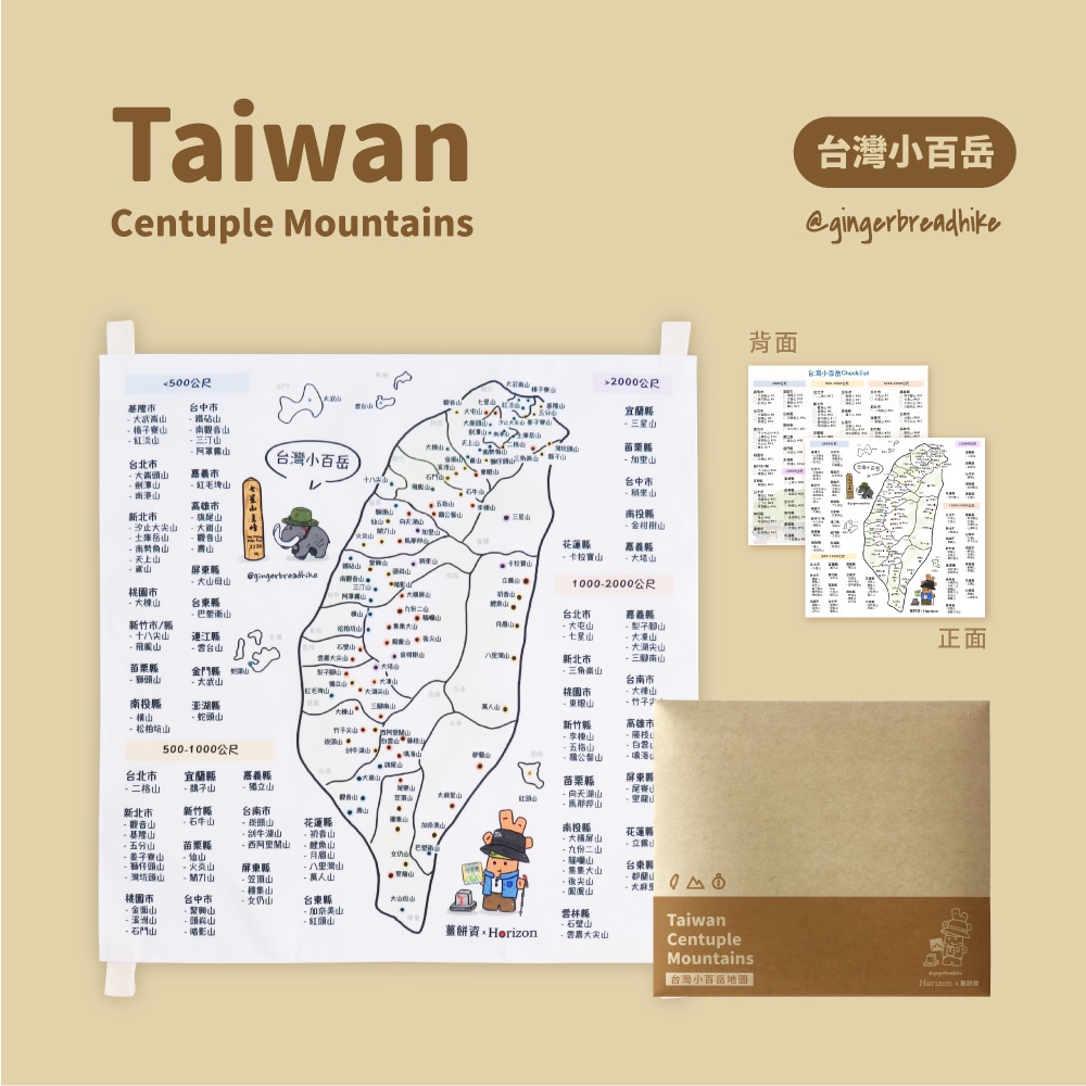 【Horizon天際線x薑餅資】帆布台灣大/小百岳地圖 登山地圖 台灣百岳地圖掛布 獨家聯名款地圖(60x60cm)大百岳|小百岳|NG小百岳(不含外包裝信封)|大小百岳組(限時贈手繪明信片)Photo Frames & Wall DecorationICareU嚴選
