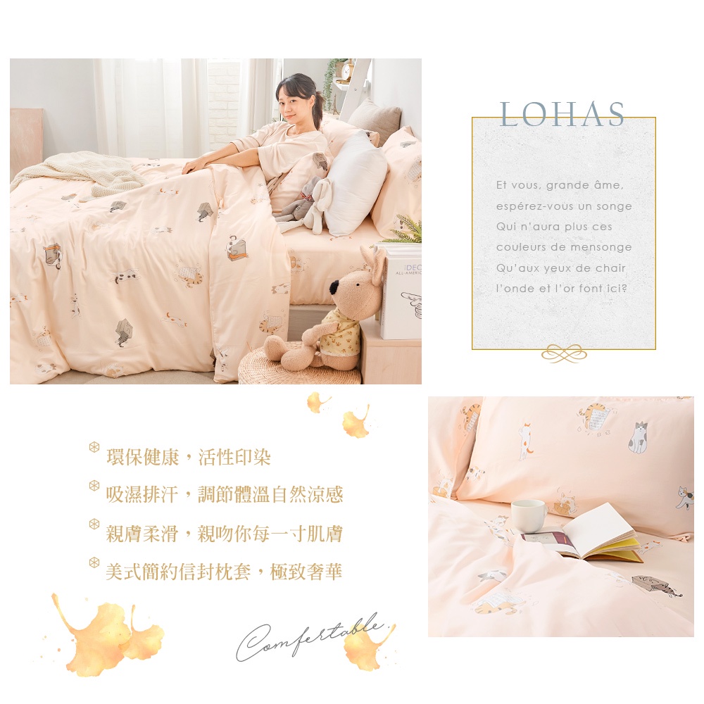 【iHOMI 愛好眠】奧地利天絲 單人/雙人/加大 床包組/床包被套組 / 午後貓遊 台灣製雙人加大床包三件組|雙人加大床包被套四件組|單人床包二件組|單人床包被套三件組|雙人床包三件組|雙人床包被套四件組|雙人四件式鋪棉兩用被床包組|雙人加大四件式鋪棉兩用被床包組|單人二件組+雙人鋪棉兩用被Bedsheets, Pillowcases & Bolster CasesiHOMI Living 愛好眠家居生活館