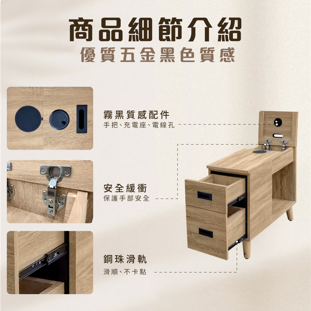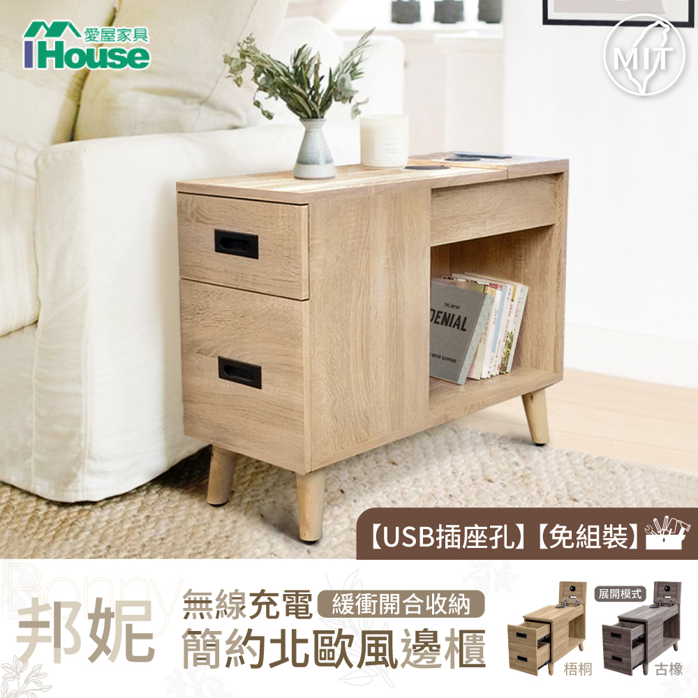 IHouse-北歐風邦妮 MIT免組裝 無線充電沙發邊櫃A款(古橡-左開口)|B款(梧桐-左開口)|C款(古橡-右開口)|D款(梧桐-右開口)WardrobesIHouse 愛屋家具【免組裝家具/木心板家具/工廠直營】