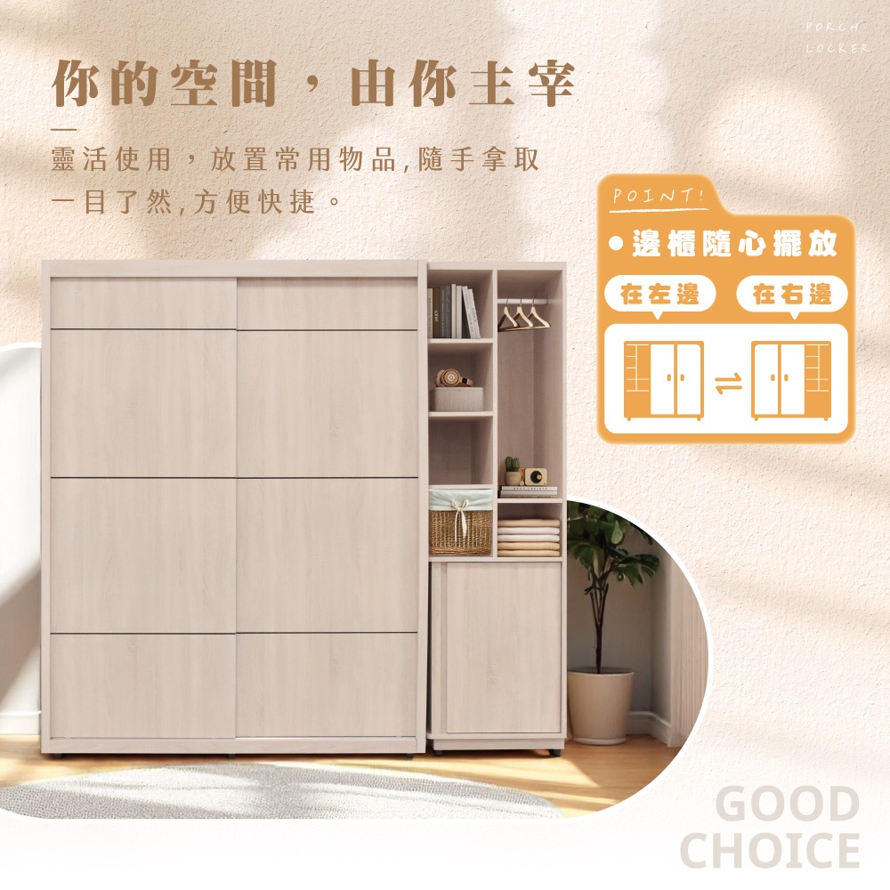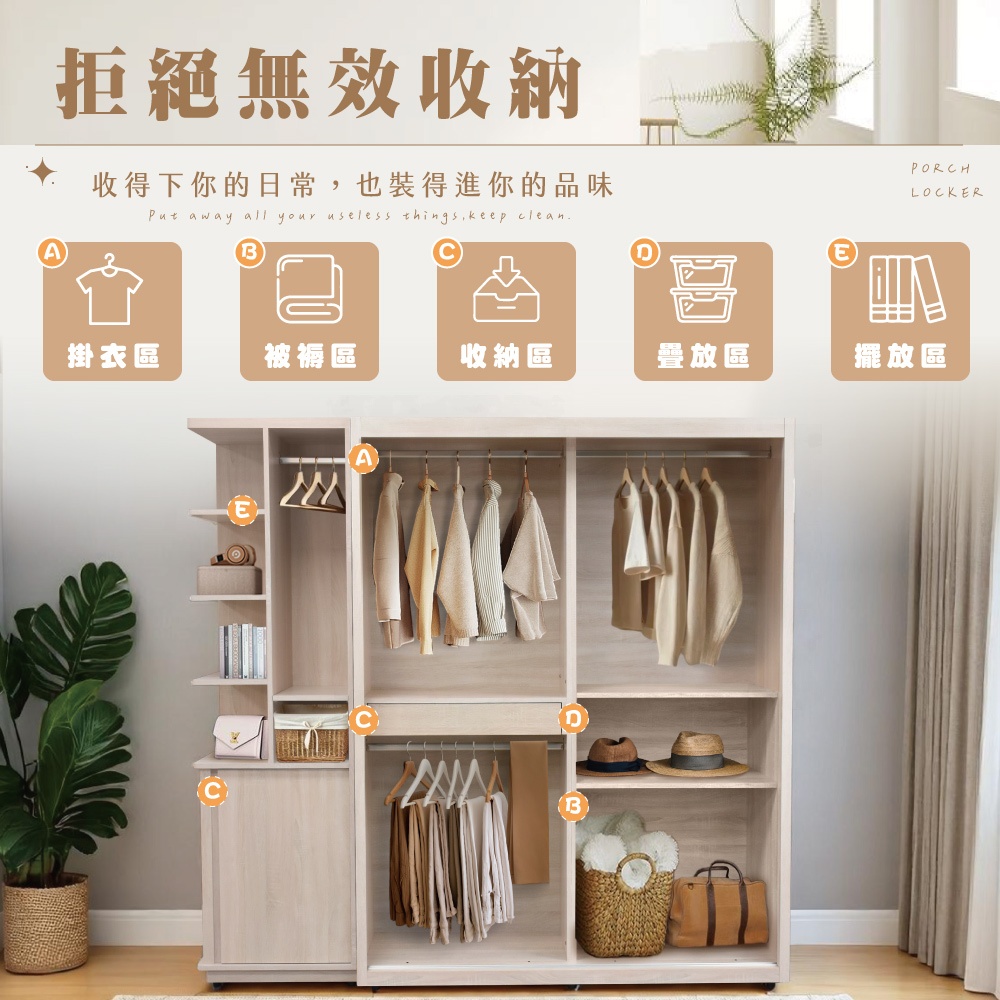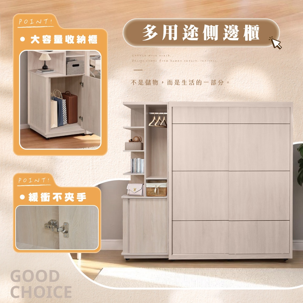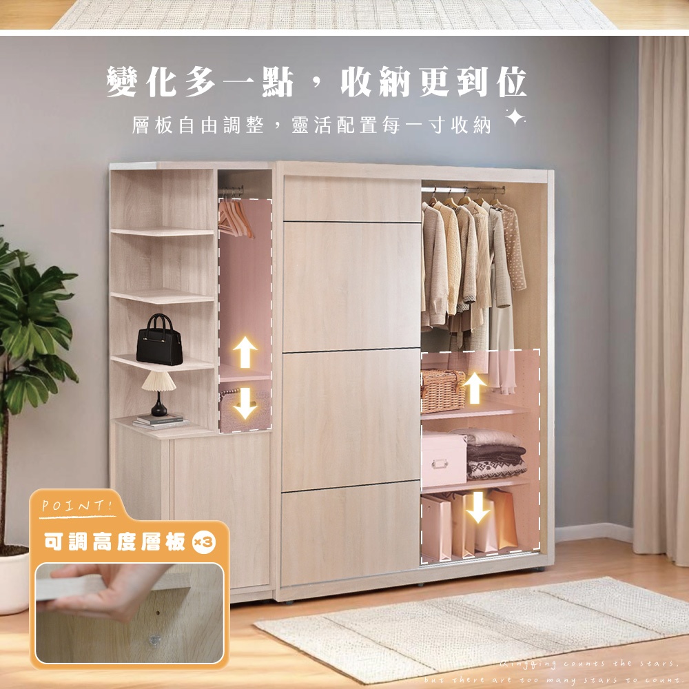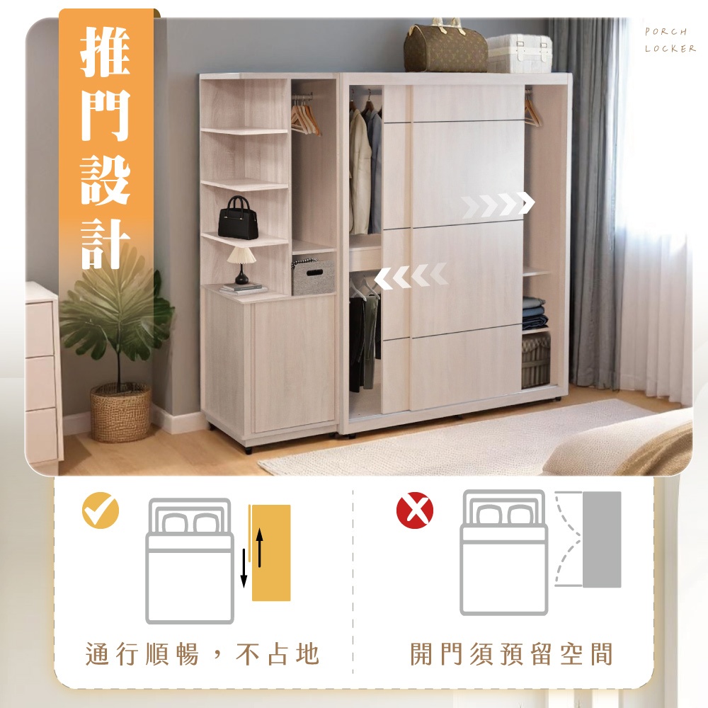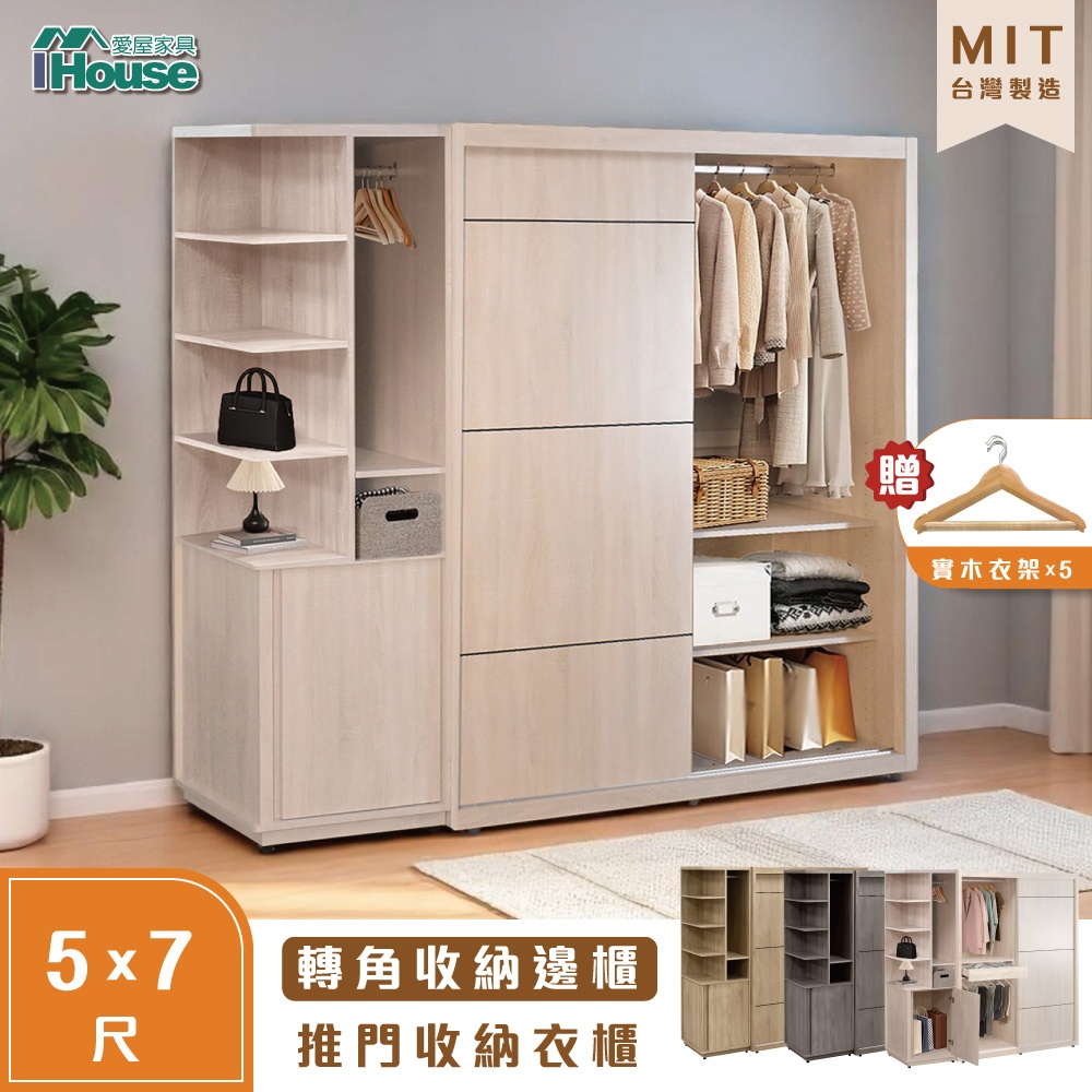 IHouse-保羅 免組裝5X7推門衣櫃+收納吊掛邊櫃-贈實木衣架*5 (7尺衣櫃/系統櫃/櫥櫃/衣櫃)梧桐|古橡|白梧桐WardrobesIHouse 愛屋家具【免組裝家具/木心板家具/工廠直營】