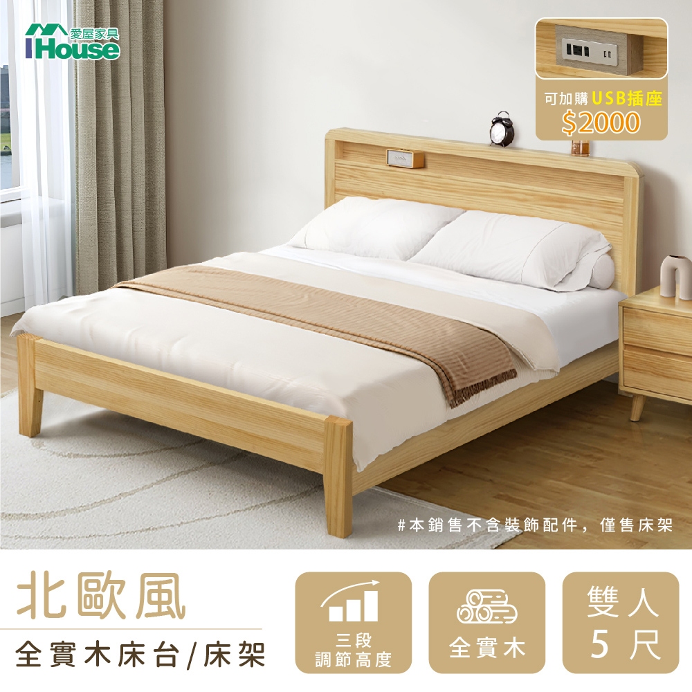 IHouse-北歐 實木床台/床架 (3段高度可調)雙人5尺|雙人加大6尺Bed Frames & HeadboardsIHouse 愛屋家具【免組裝家具/木心板家具/工廠直營】