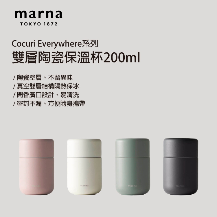 【marna 日本】無印風陶瓷塗層保溫(冰)杯-200ml粉|白|黑|綠Water Bottles & Accessoriesmarna 官方旗艦店