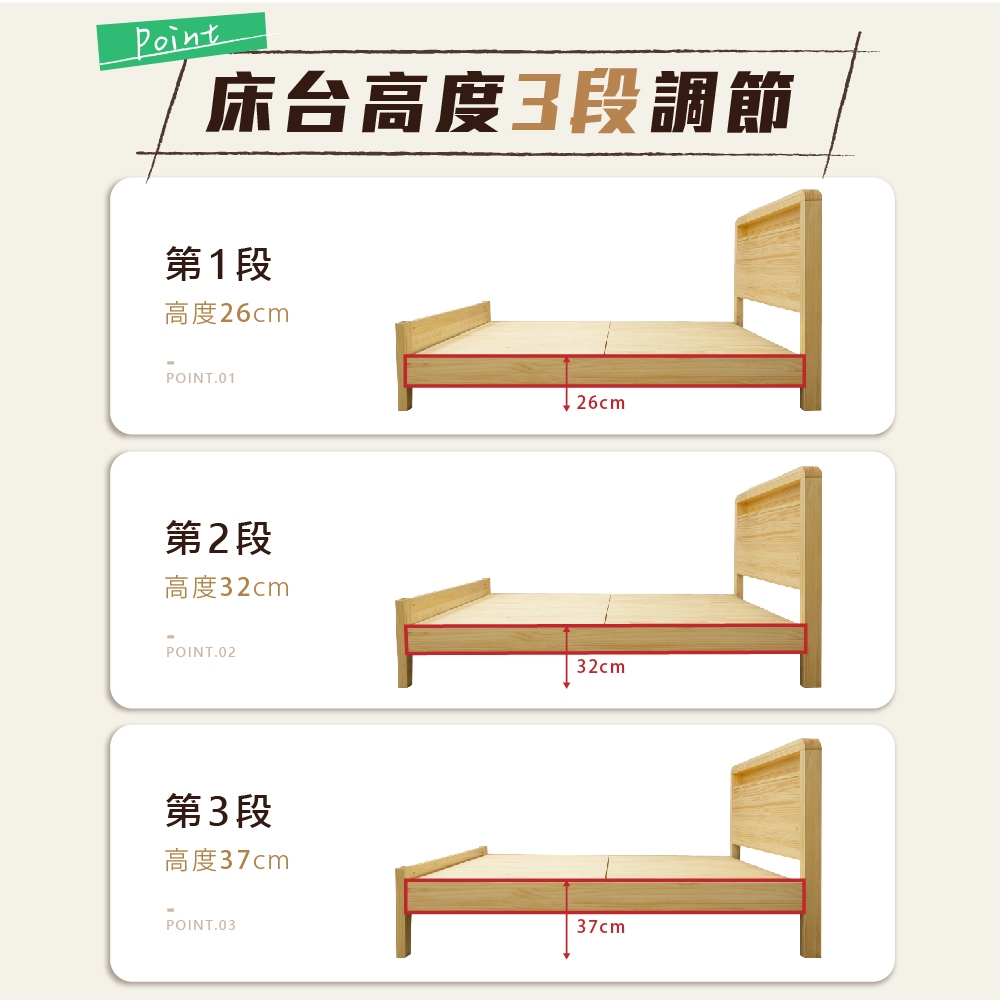 IHouse-北歐 實木床台/床架 (3段高度可調)