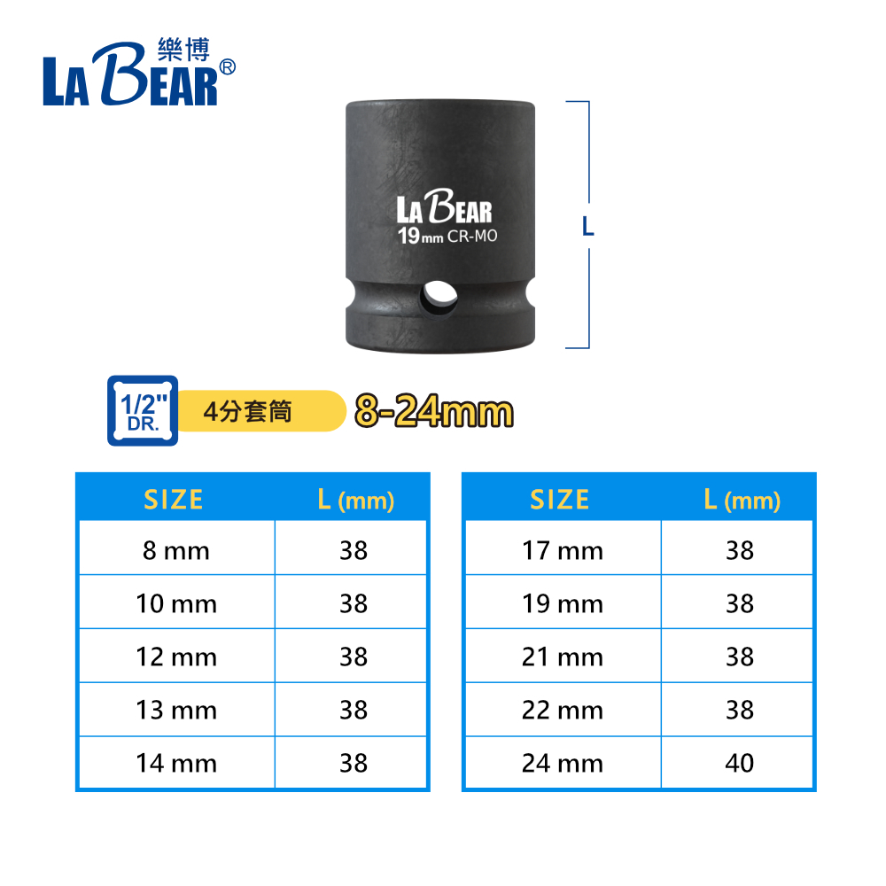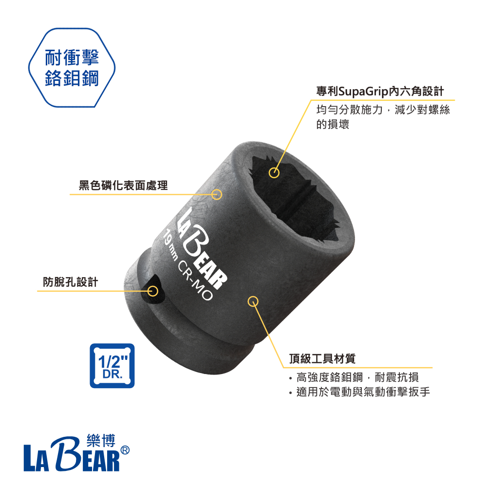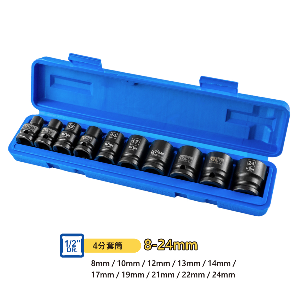 【LaBear】10PCS 止滑氣動短套筒 4分 氣動套筒 10-19mm/8-24mm 防滑套筒 專利設計 台灣製(短)8-24mm氣動套筒組10件組Air Pumps, Parts & AccessoriesLaBear 樂博工具