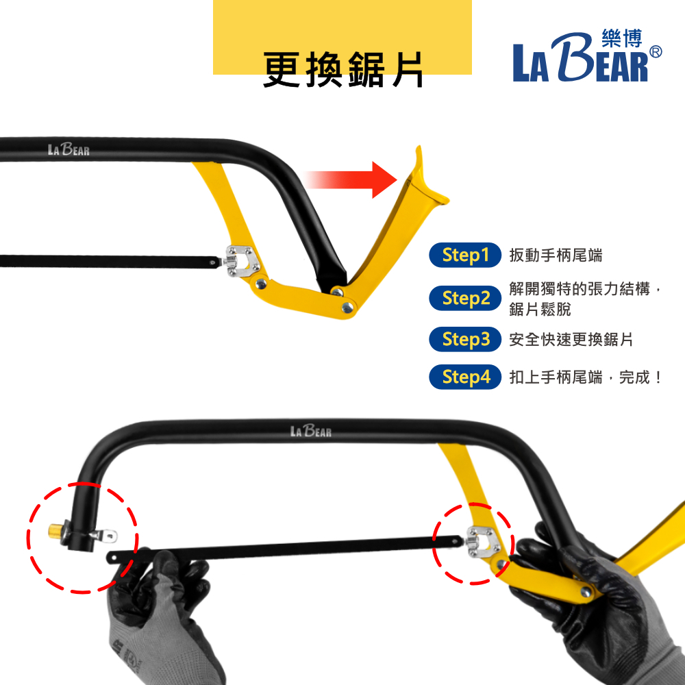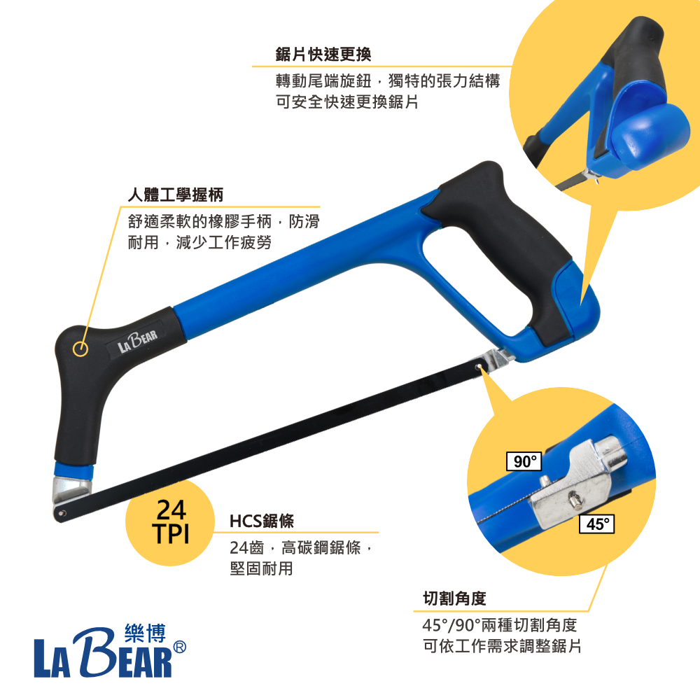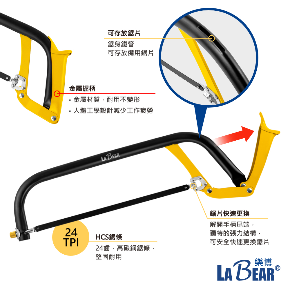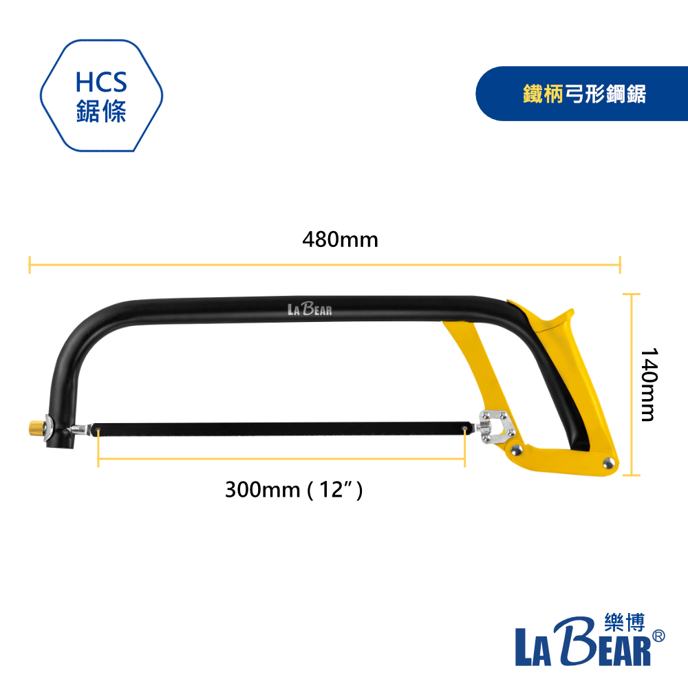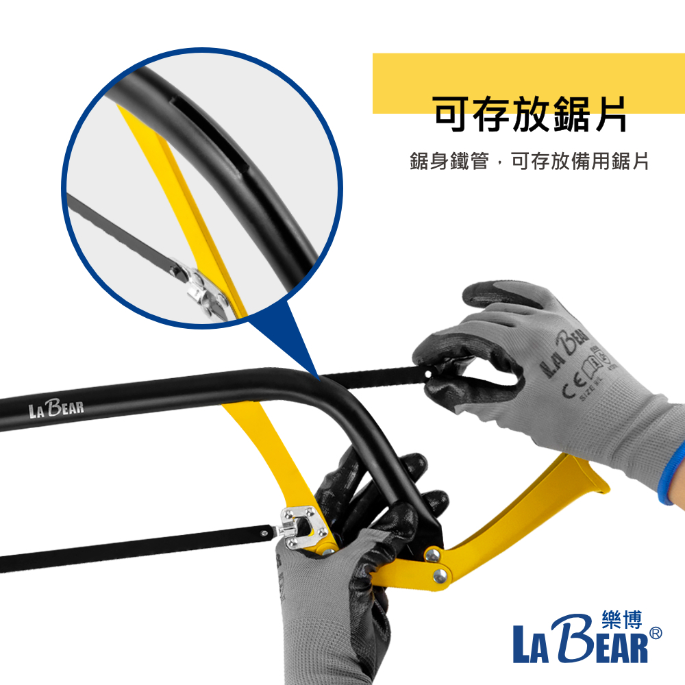 【LaBear】極舒適型鋼鋸 弓形鋼鋸 鐵柄 12吋 24T 鋼鋸 45度/90度 HCS鋸條 可調式 重型鋼鋸 弓鋸極舒適型鋼鋸|(黃) 鐵柄弓形鋼鋸ToolsLaBear 樂博工具