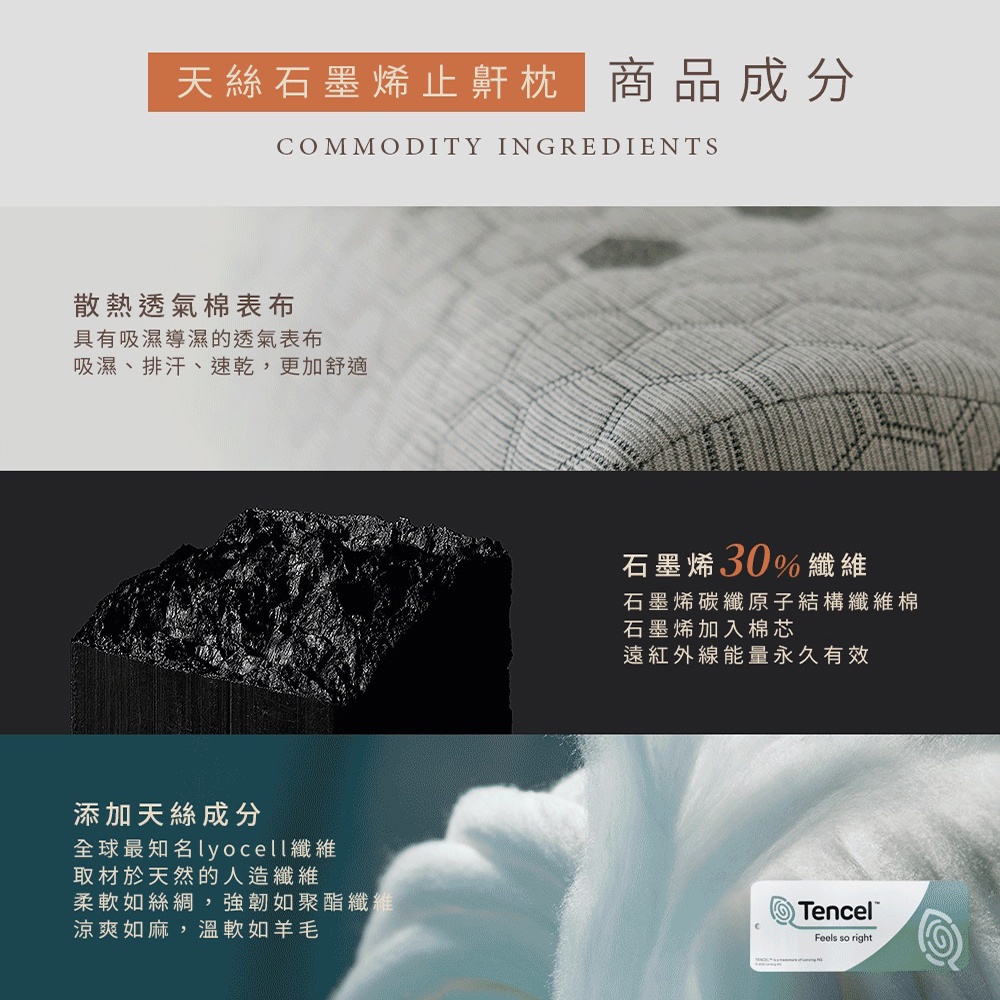 【金大器】天絲石墨烯止鼾枕 枕頭 枕芯 台灣製造 紅外線 恆溫 類韓國枕 舒眠枕 止鼾枕 人體工學 肩頸紓壓石墨烯信封式枕套|天絲石墨烯止鼾枕(一顆) (超商限1顆)PillowsJINDACHI金大器精品寢具-官方旗艦|天絲/床包/棉被/枕頭/床墊/椅靠墊