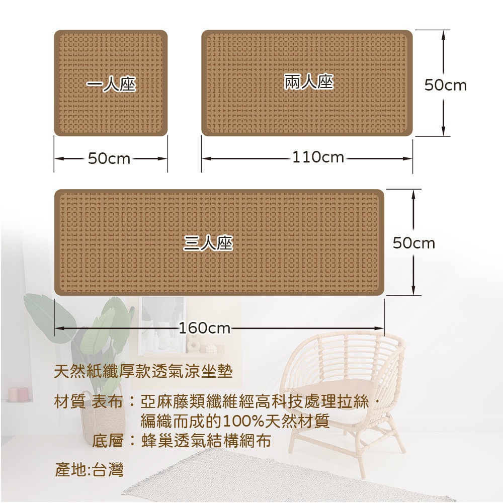 【金大器】天然紙纖厚款透氣涼坐墊- 1人座(50×50 cm)2人座(50×110 cm)3人座(50×160 cm)2人座|3人座|1人座|全套組(1+2+3)CushionsJINDACHI金大器精品寢具-官方旗艦|天絲/床包/棉被/枕頭/床墊/椅靠墊