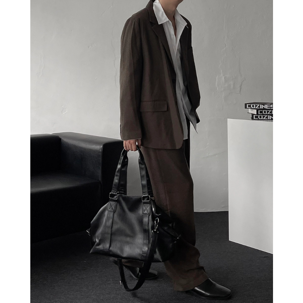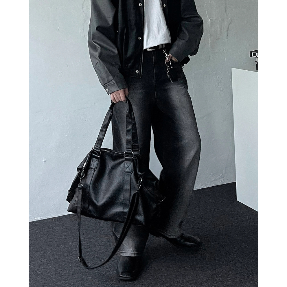 【Metanoia】韓國設計 實用波士頓皮革斜背包黑色Metanoia 正韓服飾 & MdoC 總代理
