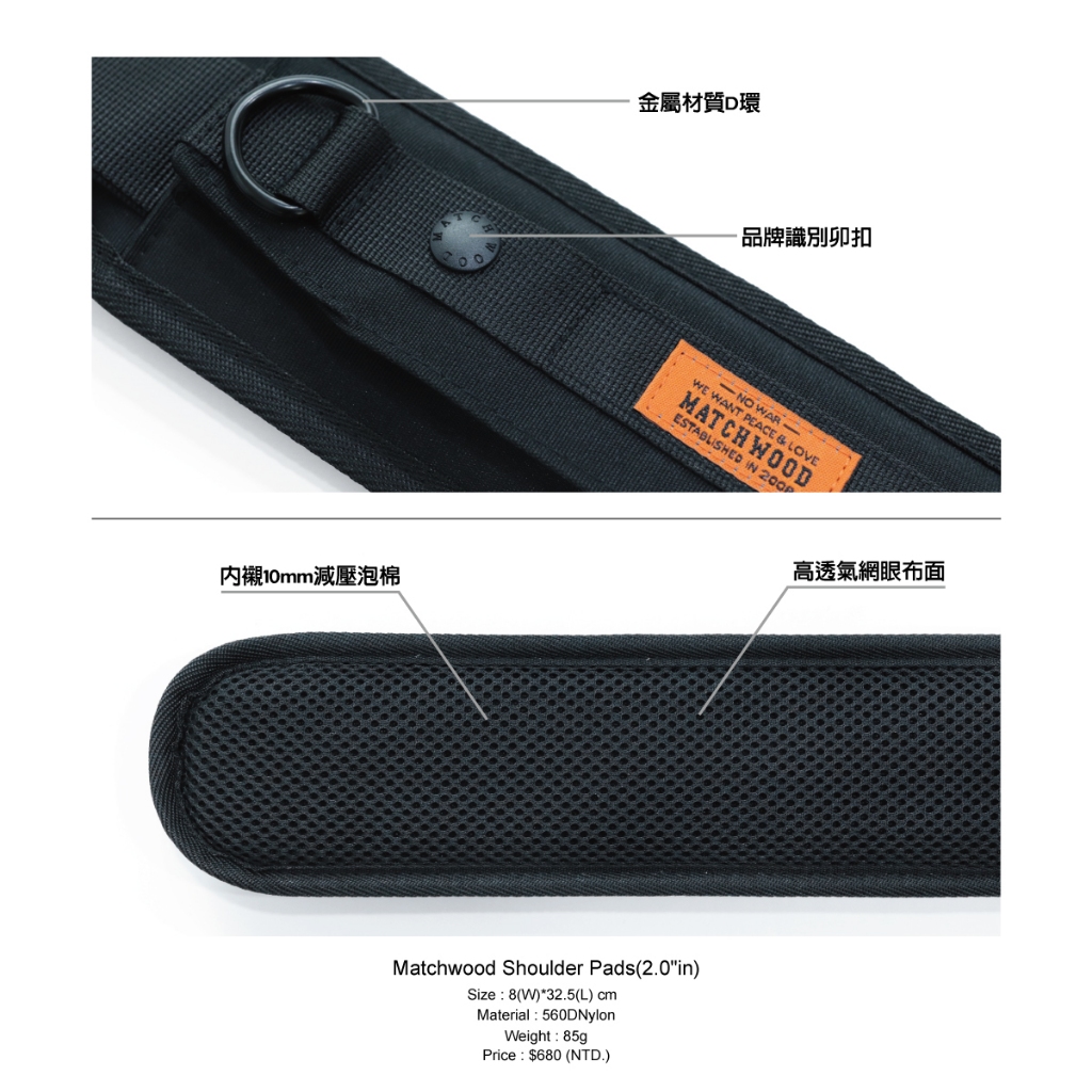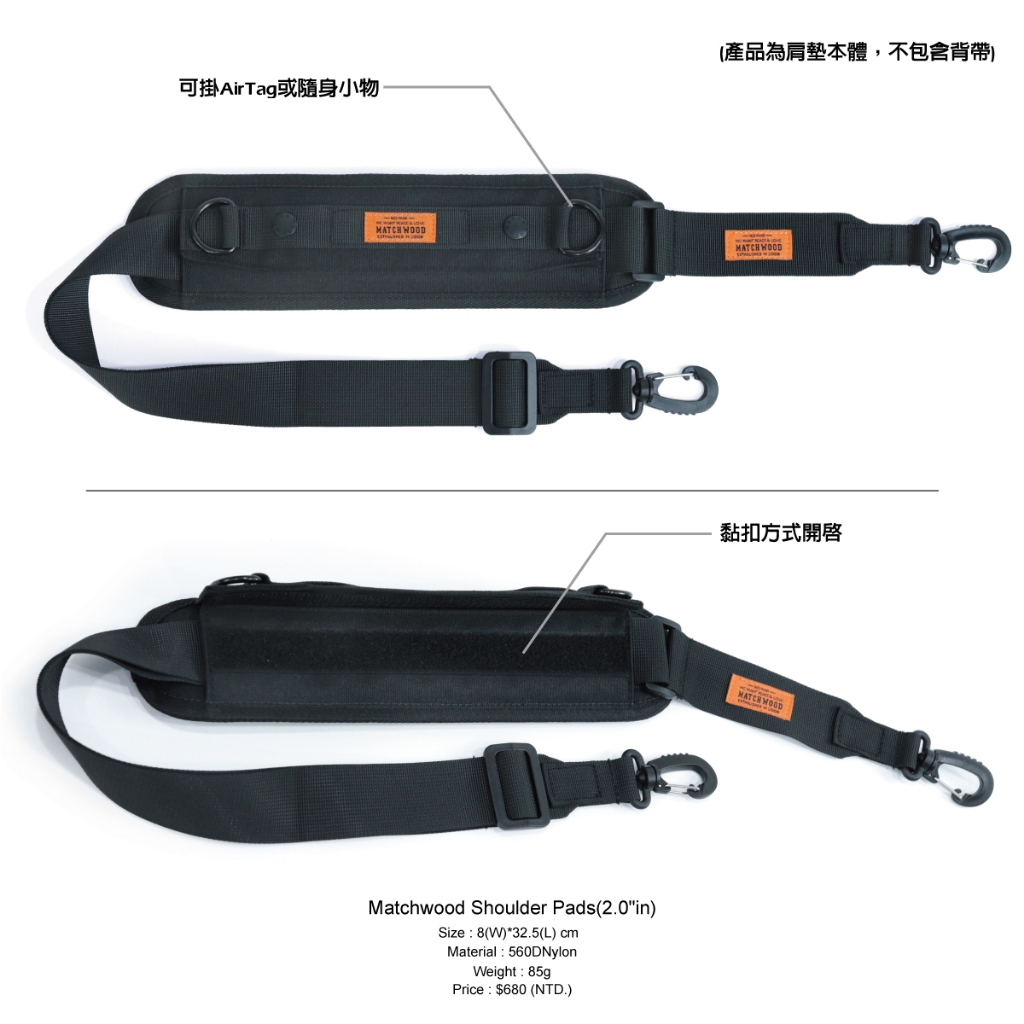 Matchwood Shoulder Pads 斜背包減壓肩墊 背帶墊 共四色 官方賣場全黑款|黑橘款|軍綠款|丹寧藍款matchwood