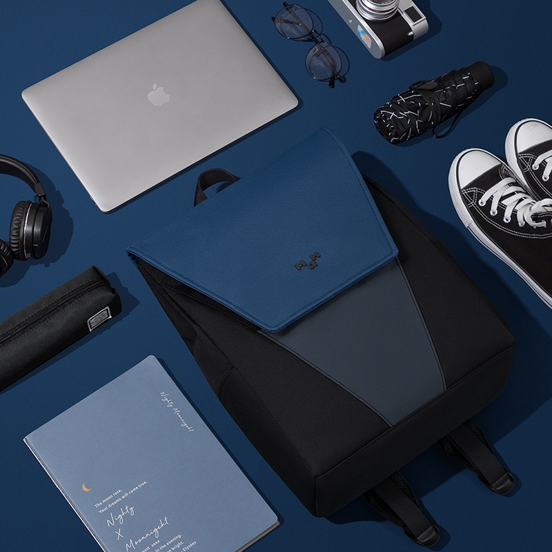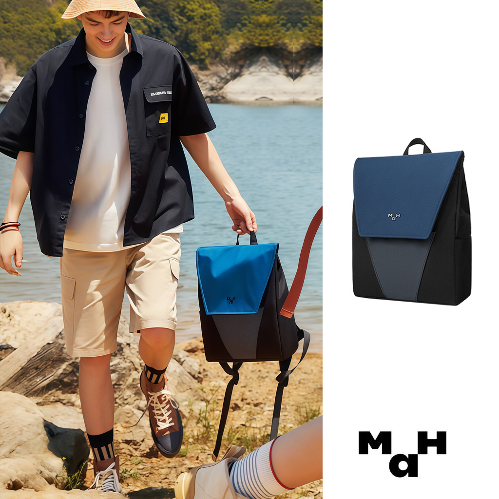 MAH 日系撞色後背包 時尚簡約休閒男士雙肩包 大容量防潑水 大學電腦包 多格層 大學生書包 背包藍黑灰三拼(現貨)|紅藍拼色(現貨)Laptop BackpacksMaH 台灣官方旗艦館