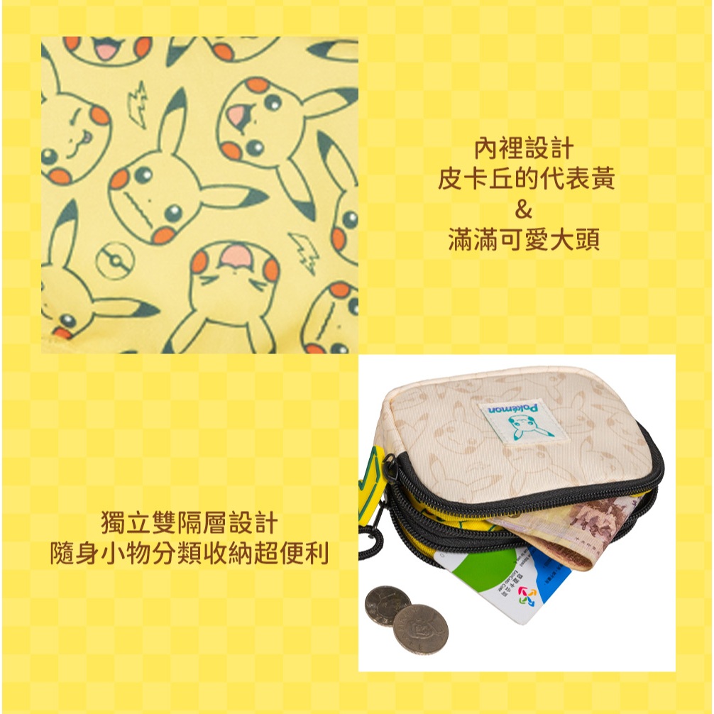 【Pokemon】寶可夢皮卡丘雙層零錢包|分類收納超便利|黑色 米色 PK00D04BK/BG
