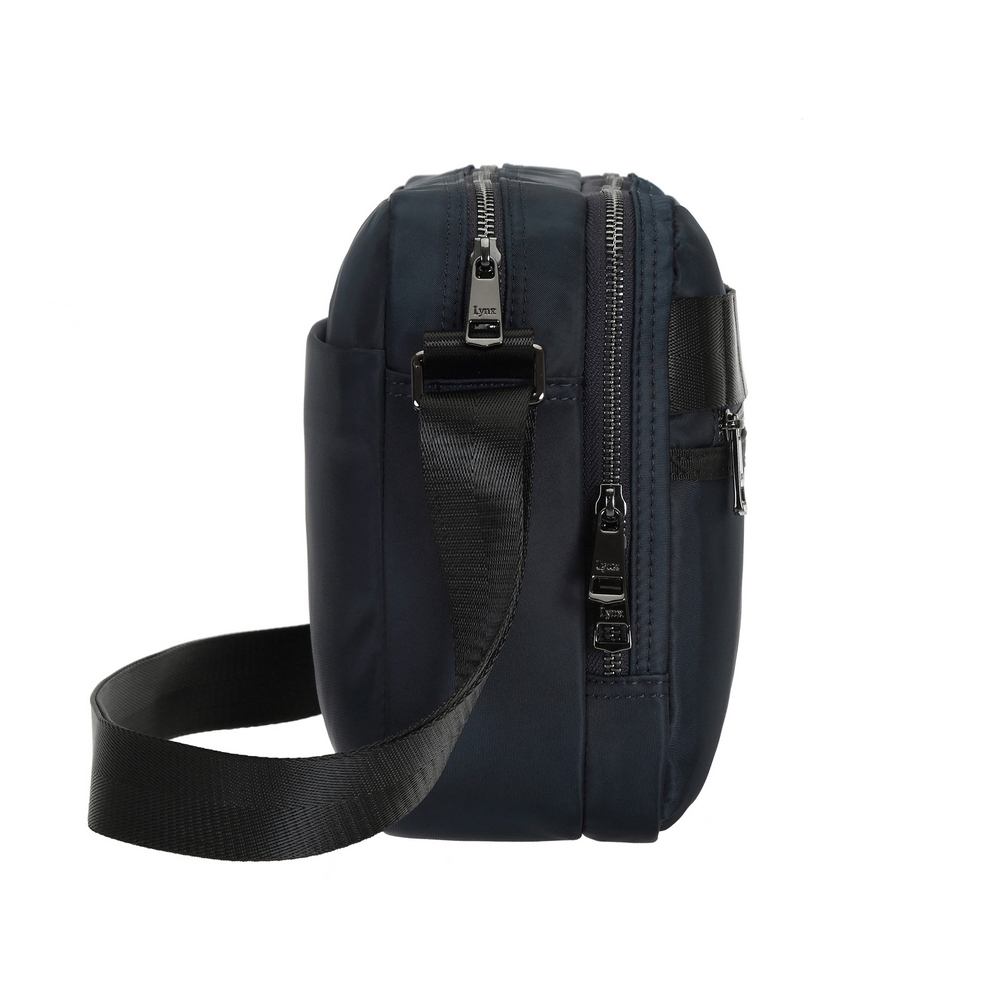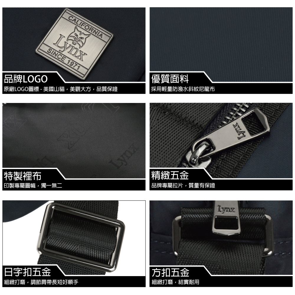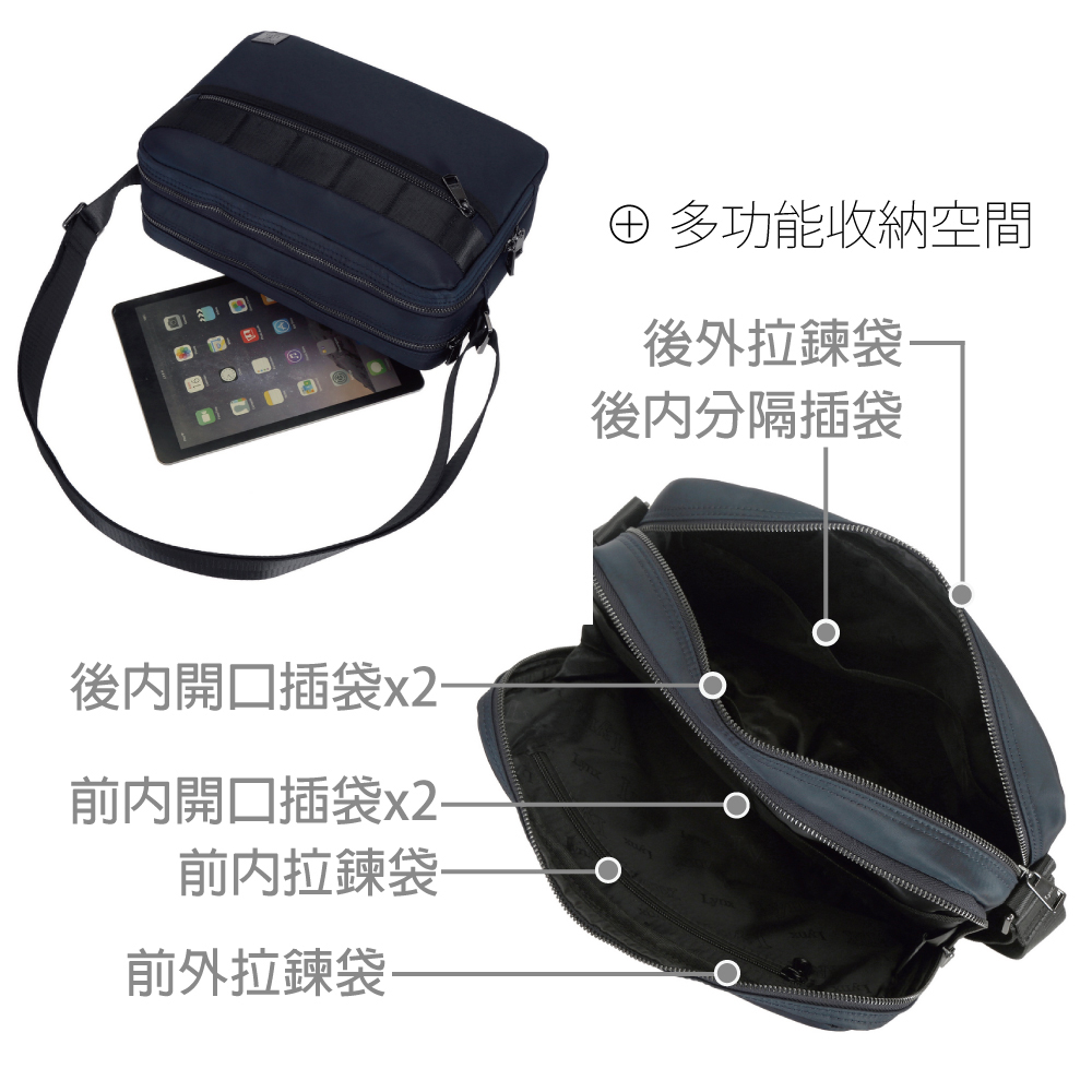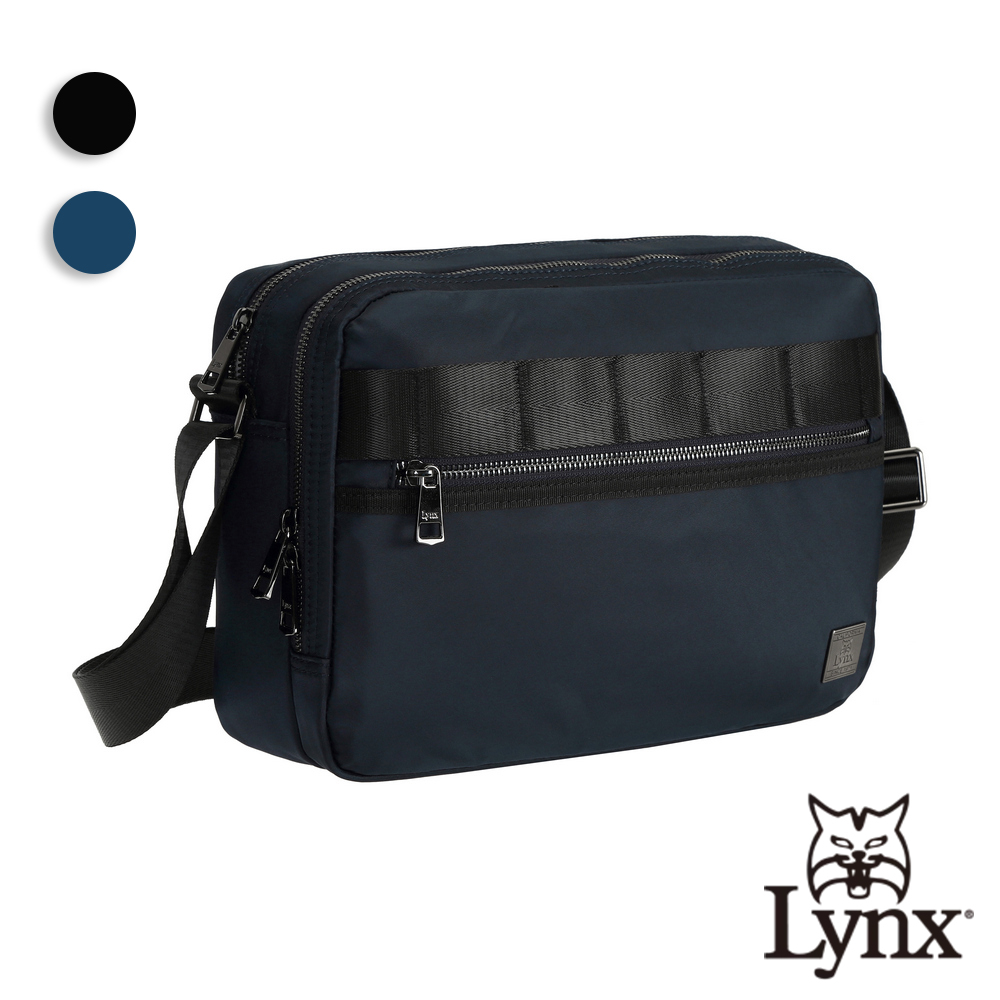 【Lynx】美國山貓 輕量防潑水斜紋尼龍布包 多隔層機能包 橫式側背包 雙層側背包 2色 黑色/深藍 LY39-6604黑色|深藍色KIPLEO